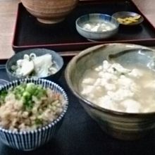 夫婦で沖縄味噌汁とゆし豆腐を注文。同じスープを使ってるのかと思いきや、ちゃんと別に作られており美味しかったです。ジューシーもホワホワして◎。地元の方と観光客が混在していましたが、居心地がいい店でした。