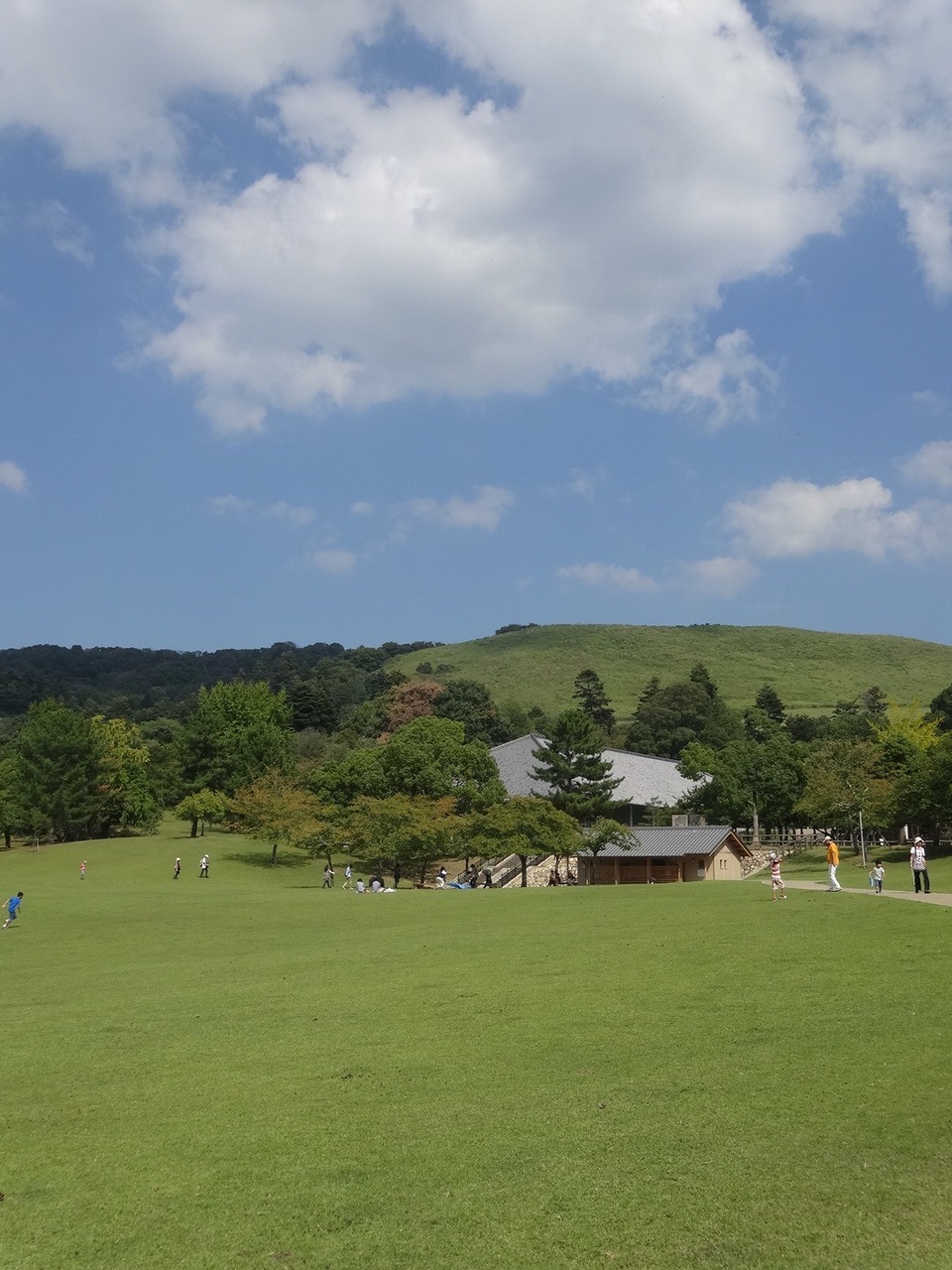 関西の子どもであれば遠足で行ったことのある若草山。小高い丘です。緑いっぱいで気持ちいい。そして鹿もうろうろお散歩しています。サンセットもステキです、ロマンチックです。最近はライブなども実施しています。夕暮れは気持ちよさそう。