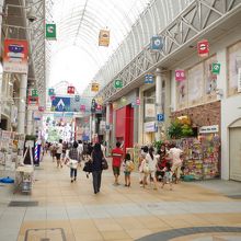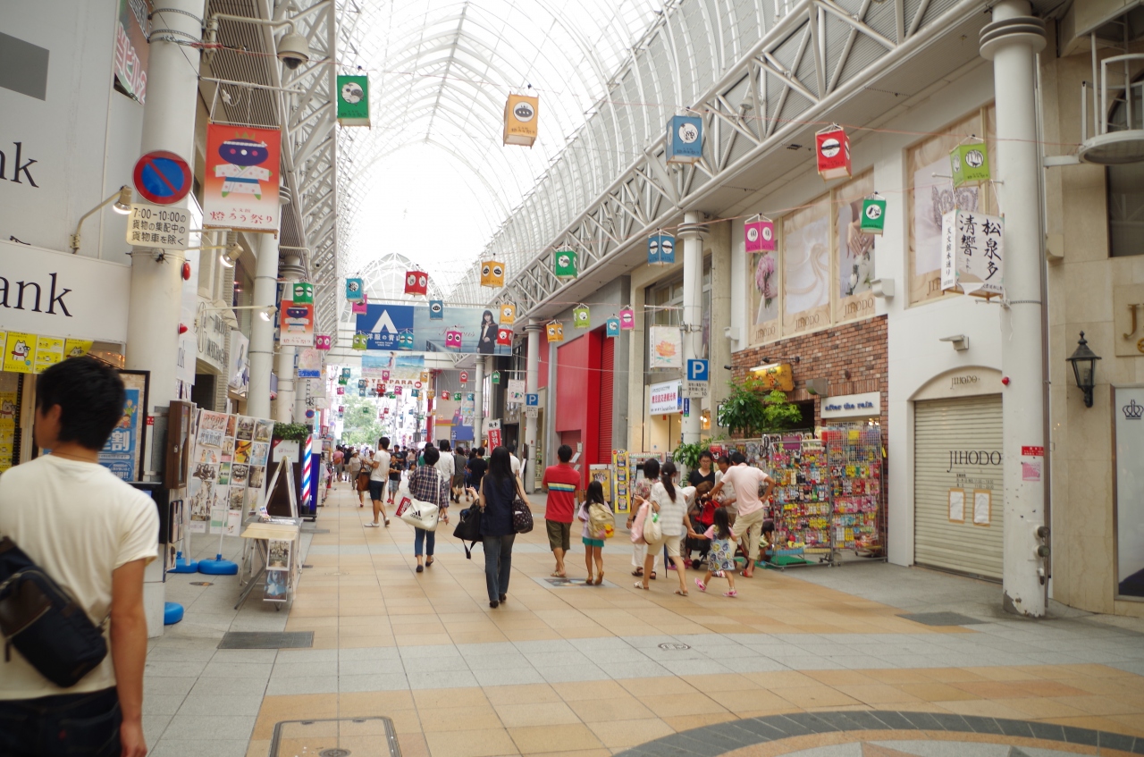 商店街を覆うアーケードは、一説には桜島の灰を除けるためにつけられたものだとか。