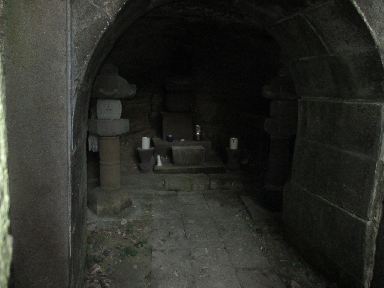 雪の下の源頼朝の墓入り口から山沿いに東に数十メートル行くと、草が生い茂った階段があります。その階段を山沿いに上ると、一つのやぐらが口を開けています。このやぐらが三浦一族のやぐらです。
