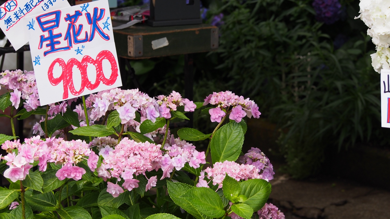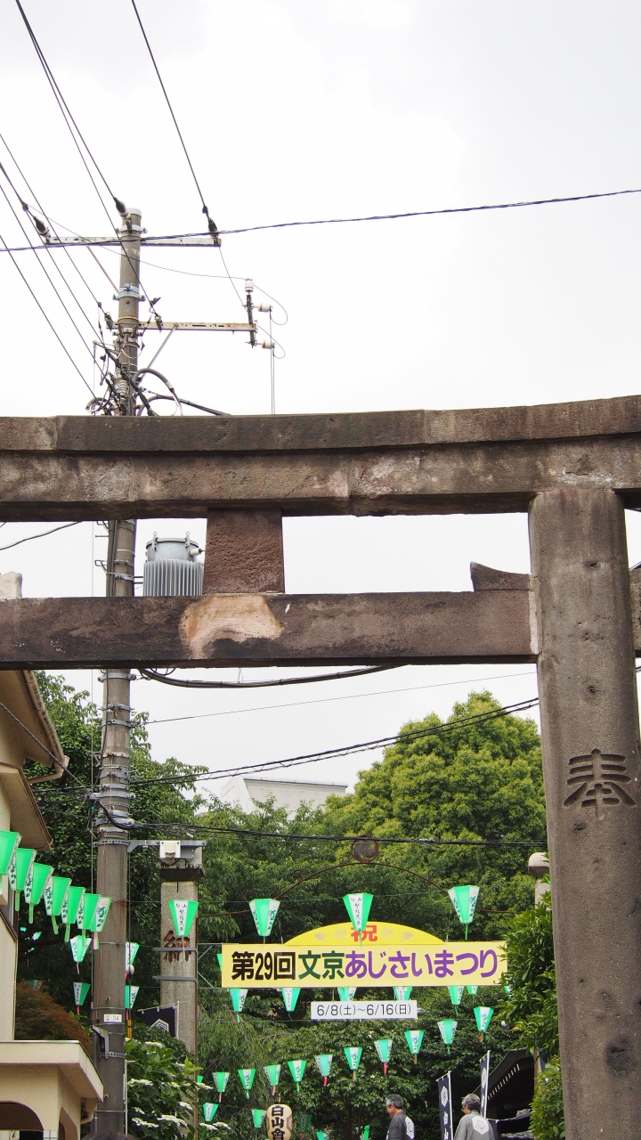 梅雨の楽しみあじさい。駅からすぐの東京十社のひとつ。