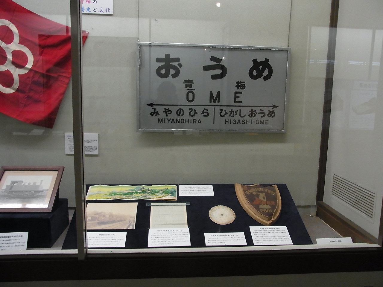釜の淵公園内にある郷土資料館です。館内では昔の青梅の人々の暮らしぶりや、青梅鉄道時代の駅看板などが展示されています。また、入り口ふきんには、金剛寺の青梅から殖えられた青梅があります。移築された旧宮崎家もとなりに併設されています。