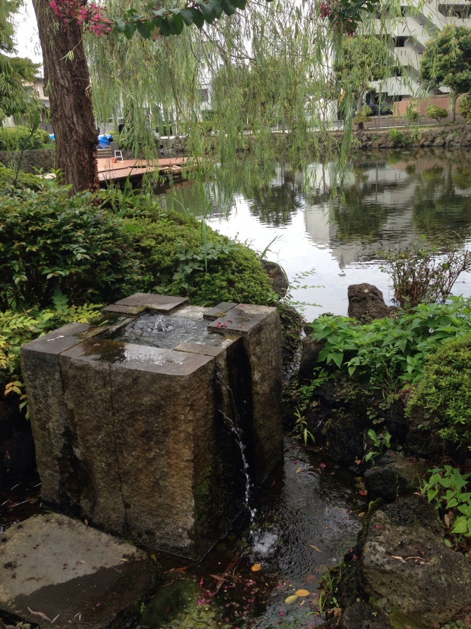 三島は富士山の伏流水が流れ出る せせらぎの街で この公園の池にも湧水がある。