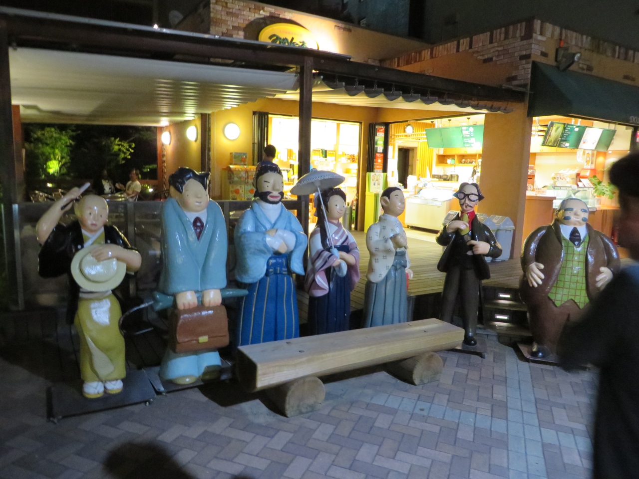 お店の前には漱石の「坊っちゃん」に出てくるキャラクターの人形も並んでいて、道後での記念撮影も楽しめます。