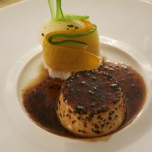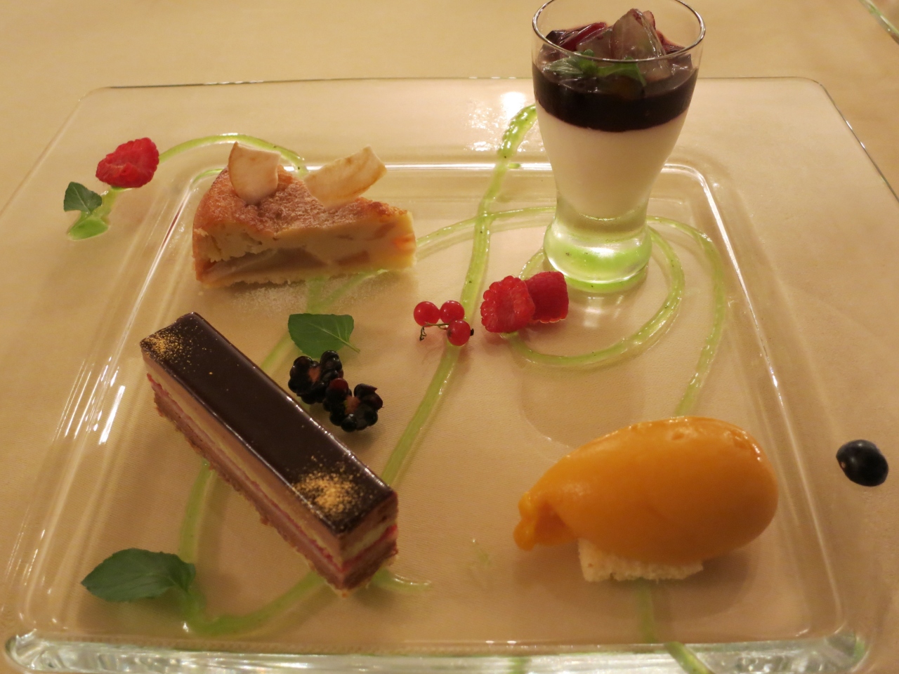 フルコースランチ(冷前菜、温前菜、魚料理、肉料理、デザート)を頂きましたが、いずれも2種のメニューから選択でき、好きな方を選べました。きれいなデコレーションと、繊細な味のフレンチは絶妙でした。