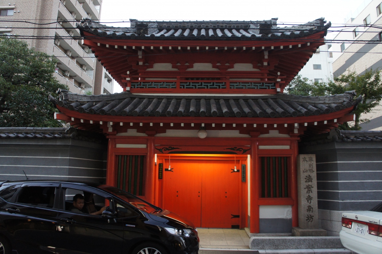 法案寺は、「日本橋の聖天さん」。聖天さんというのは、歓喜天のことですね。赤い竜宮城のような門構えが印象的です。