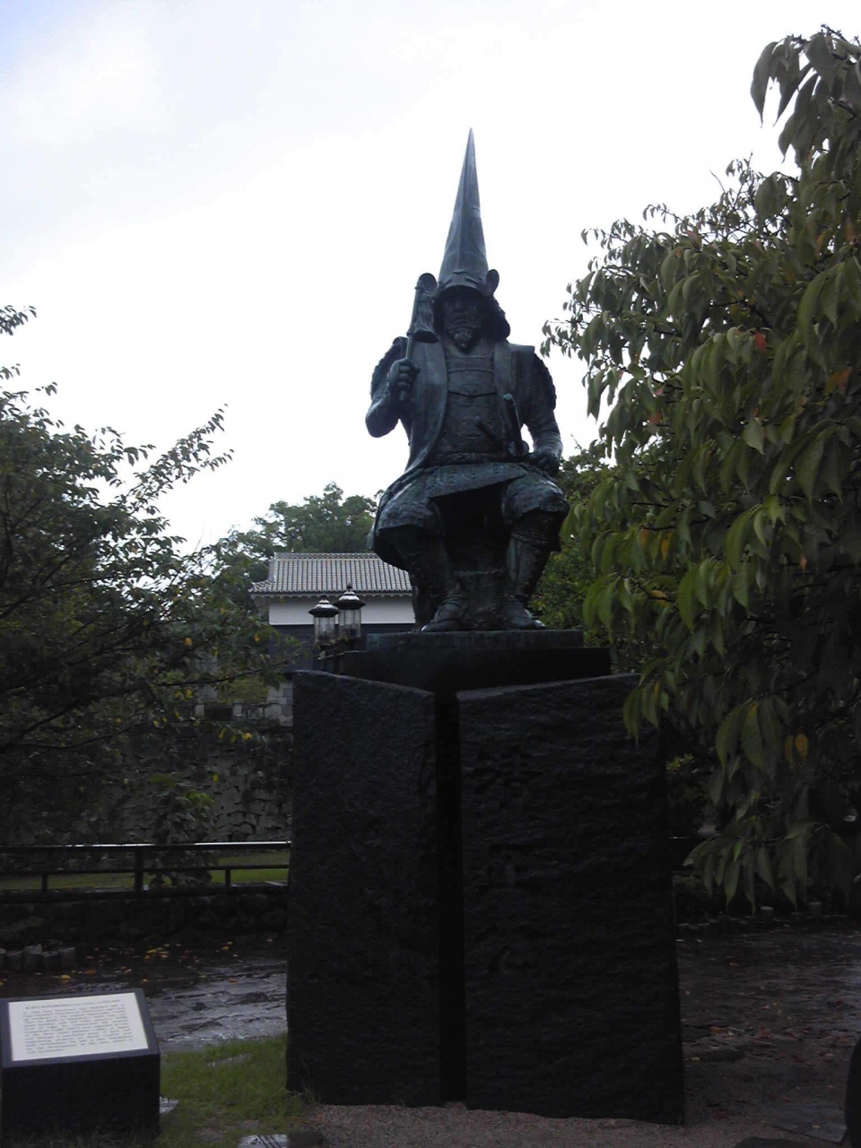 - 熊本のお城の近くに、甲冑と烏帽子姿の加藤清正の銅像があります。まるでお城を守っているかのように座っています。そして熊本の偉大なる歴史人です。