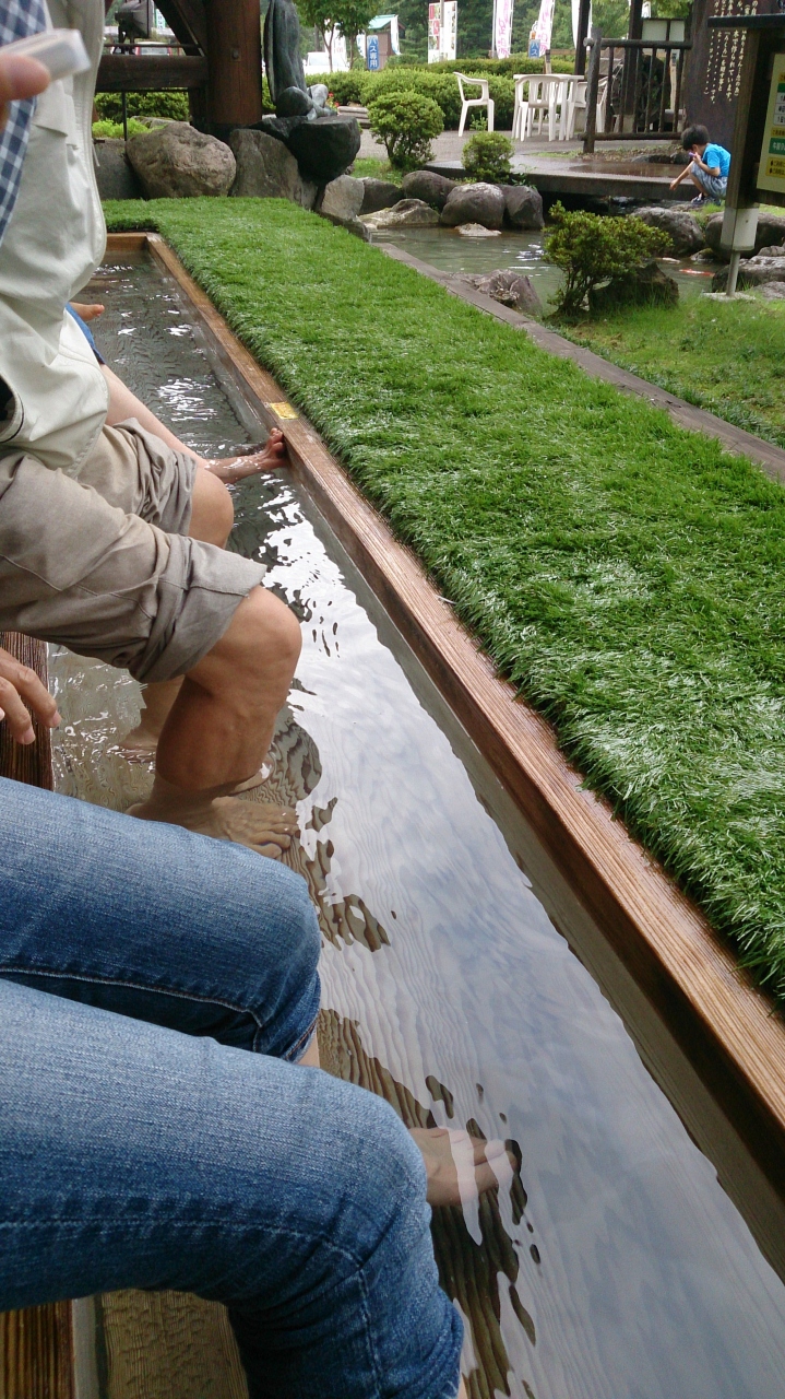 庄川水記念公園の隣の施設に足湯があります。地元の物産を売っているお店の前に足湯スペースがあり7、8人程が座れます。