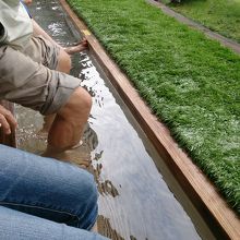 ここは、敷物が別にあるので、もし前の人が座るところを濡らしたとしても敷物を使えば濡れなくて済むのでありがたいです。