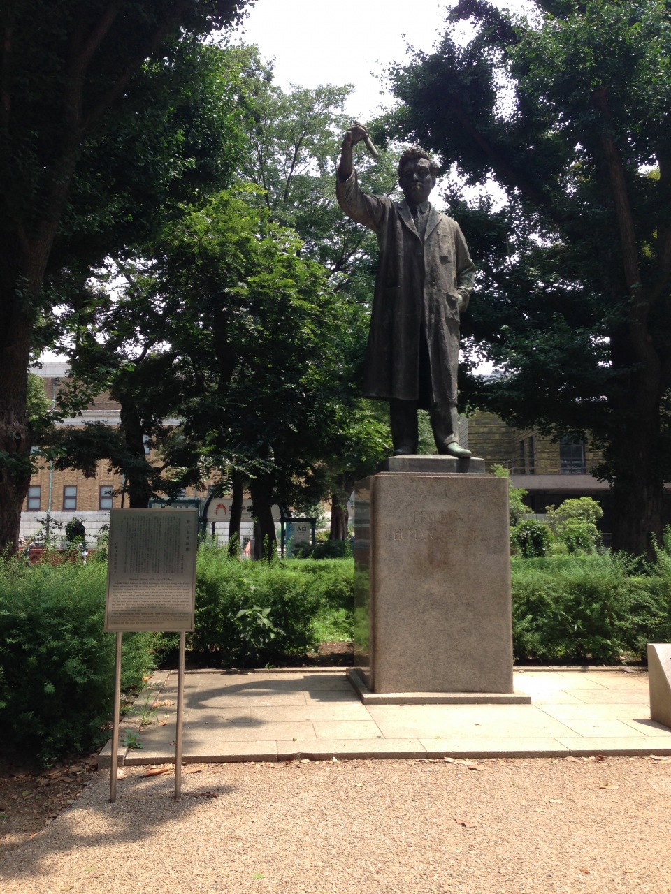 お札の肖像にもなったくらいの偉人の野口英世像が上野公園内にある事はあまり有名ではないですよね。国立科学博物館と大きな噴水広場の間の緑の中に試験管を持った姿の銅像があります。西郷隆盛像が有名すぎるのでしょうかね。