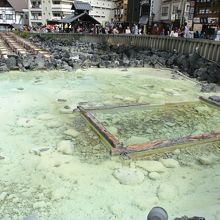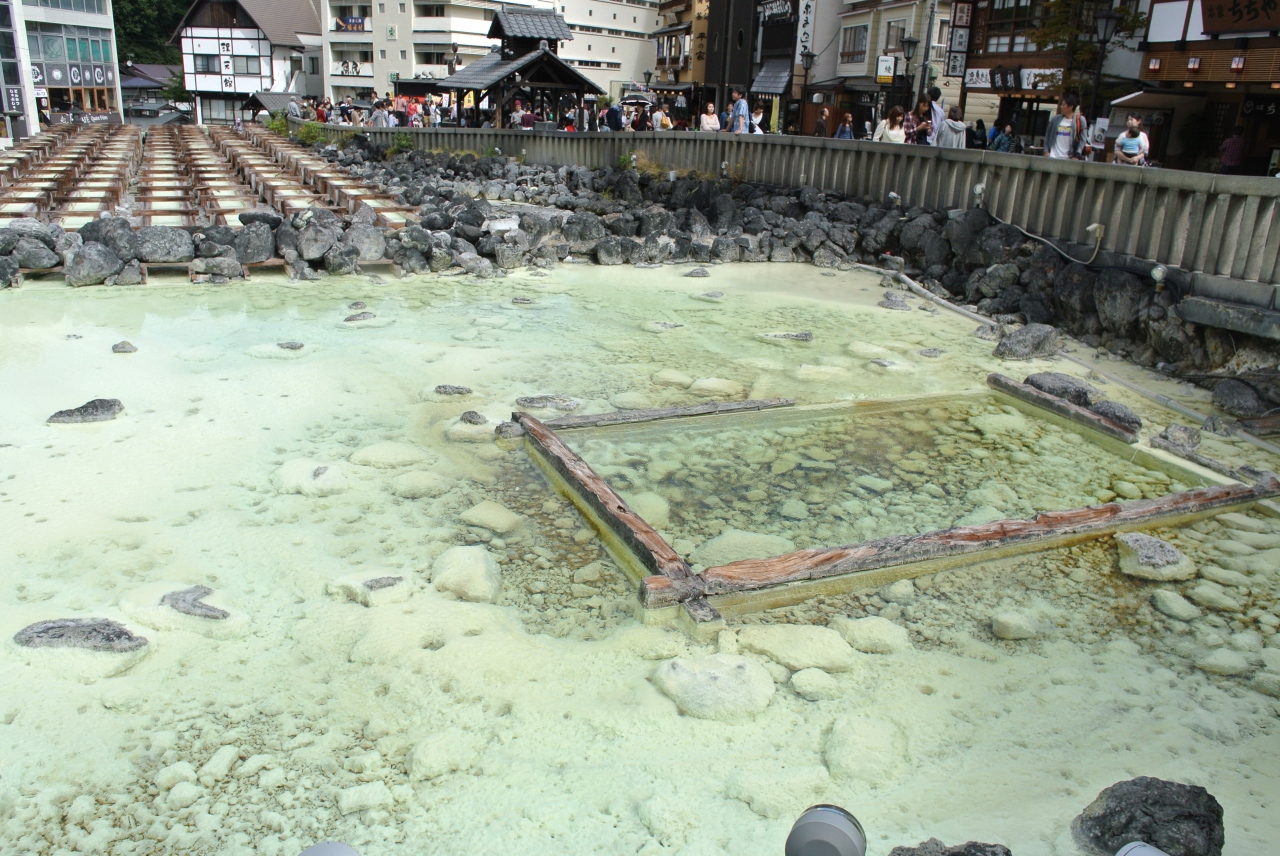 湯畑の中にある木枠で囲われた源泉です。8代将軍徳川吉宗が、ここで汲み上げた源泉を、はるばる江戸城まで樽で運ばせたことから名付けられたそうです。なんとも贅沢な話しです。交通技術から考えると、現代で「北極からロック用の氷を空輸させる」位の贅沢度かも。