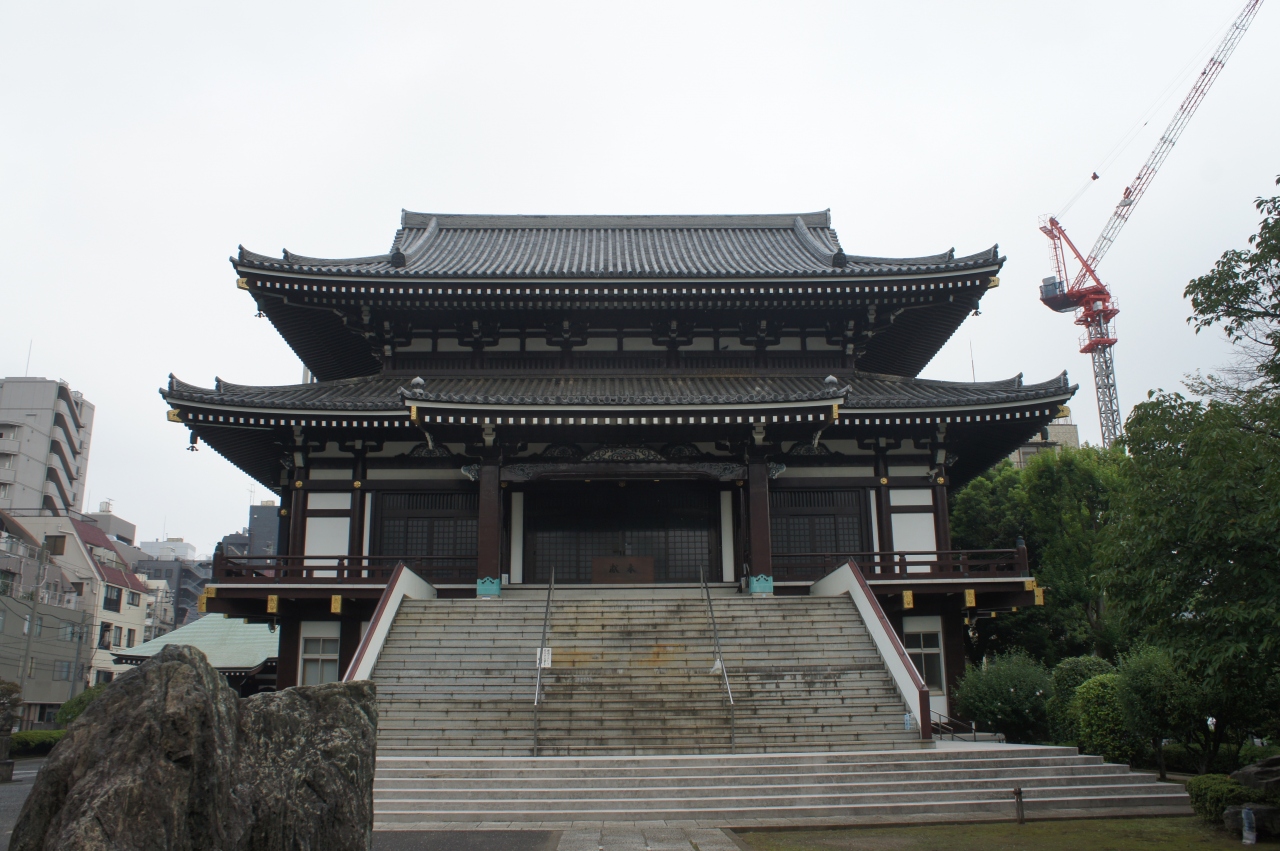 都会の真ん中に広い境内を持って、鉄筋コンクリートの大きな本堂が豪快です。