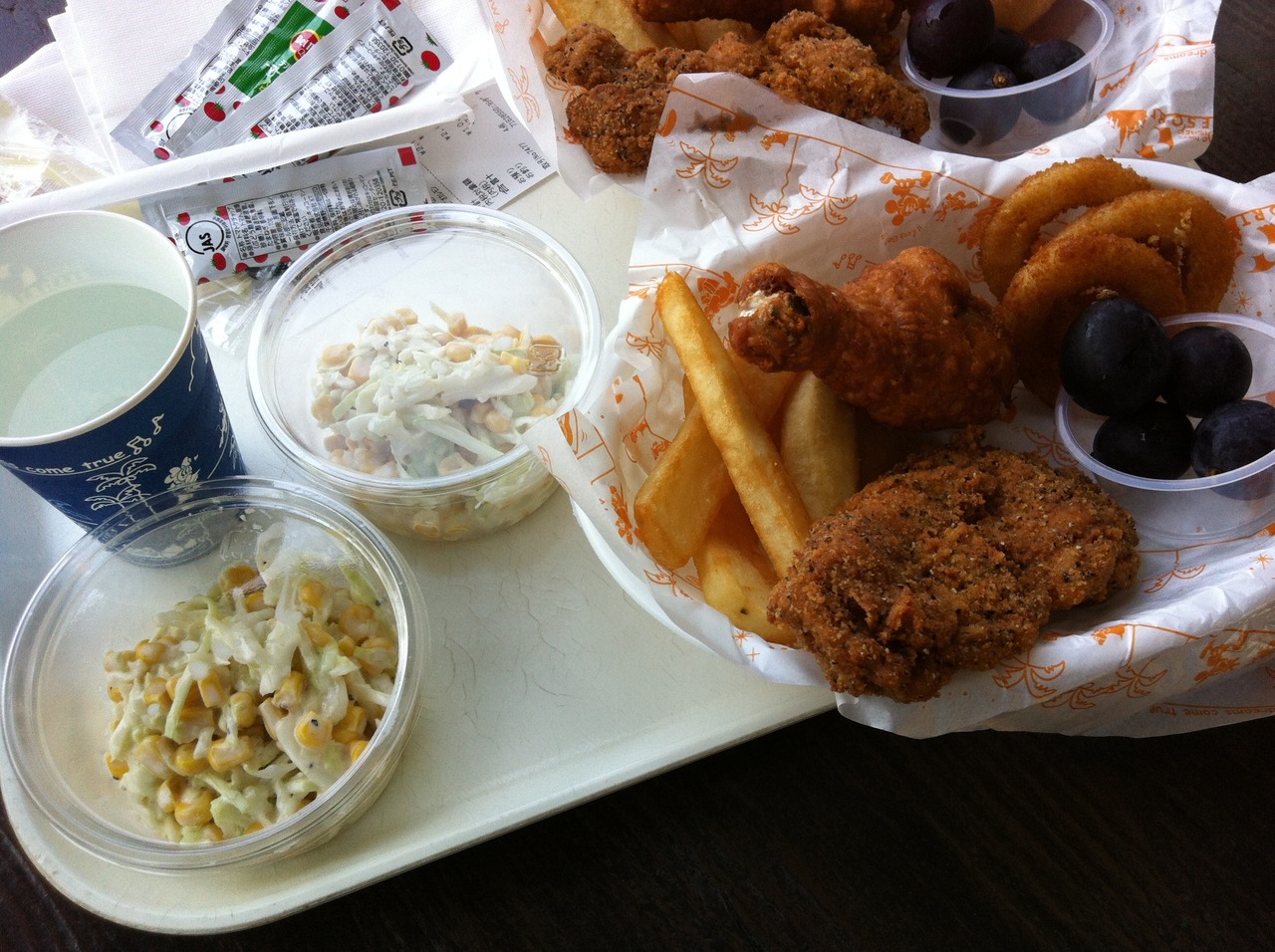 食事についても、チキンがジューシーで普通に美味しいです。値段も飲み物がついて千円程度と安く、ランチはいつもここです。