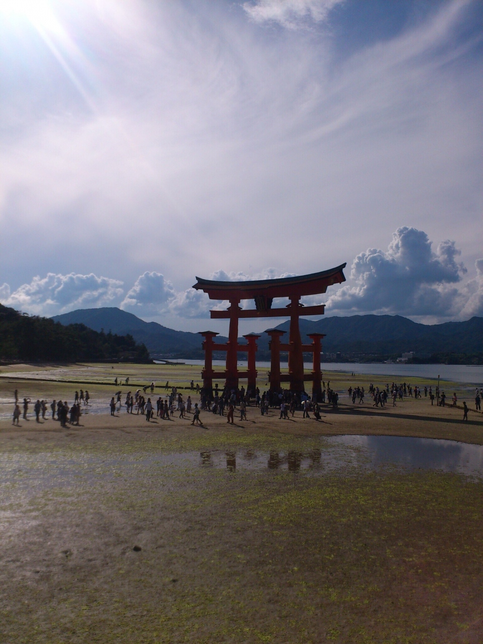 着いた時は、干潮だったため、鳥居の麓まで行けます。ヒールだと、砂に埋まらないか不安でしたが、案外、足を取られることもなくスムーズに歩けました。