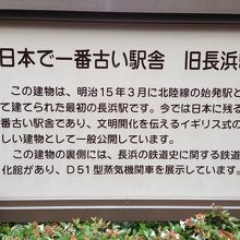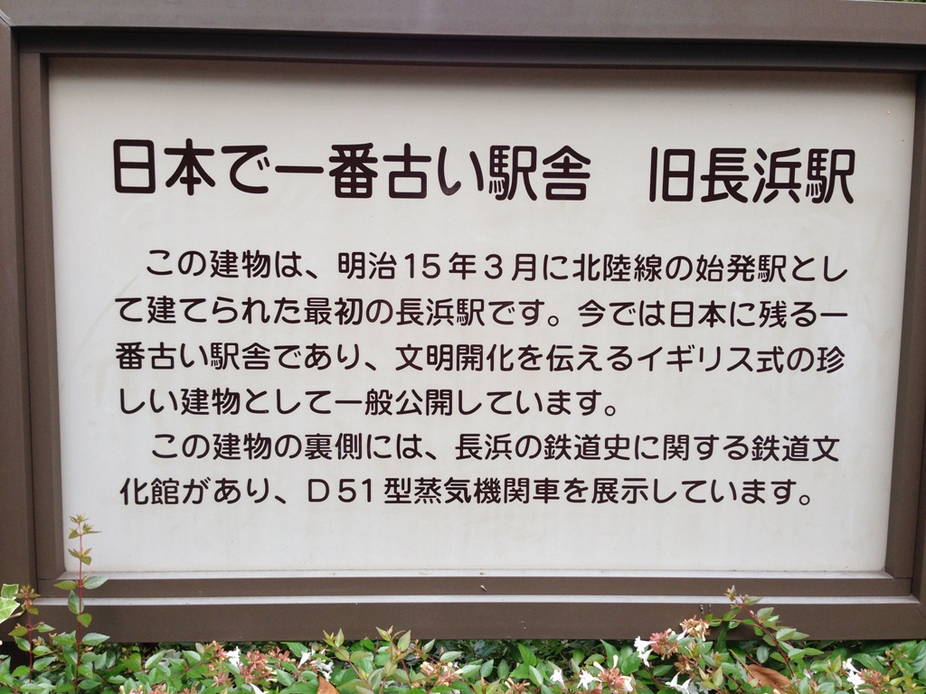 城下町の長浜にはたくさんの観光地があります。繁華街とは外れますが、ここは「長浜鉄道スクエア」です。「慶雲館」を観光しその後立寄りました。ここ旧長浜駅は、北陸線の始発駅として最初に建てられた駅のようです。現存する最古の建物です。風格があります。館内には、SL展示を初め、鉄道の歴史、写真コーナーなどがあります。鉄道ファンにはたまらないです。