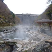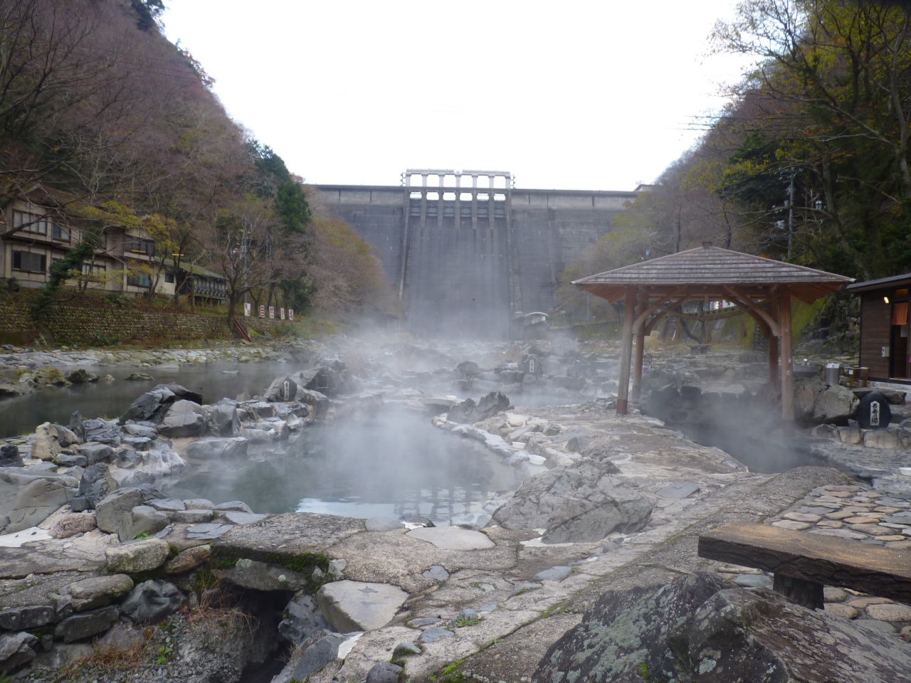 全国露天風呂番付のトップにランクされている砂風呂は男女混浴。旭川の川床から沸く温泉を岩で囲った野趣あふれ、朝夕を問わず入湯客は多い。美人の湯、子宝の湯、長者の湯の異なる湯舟で、年中24時間無料で開放されている。