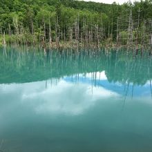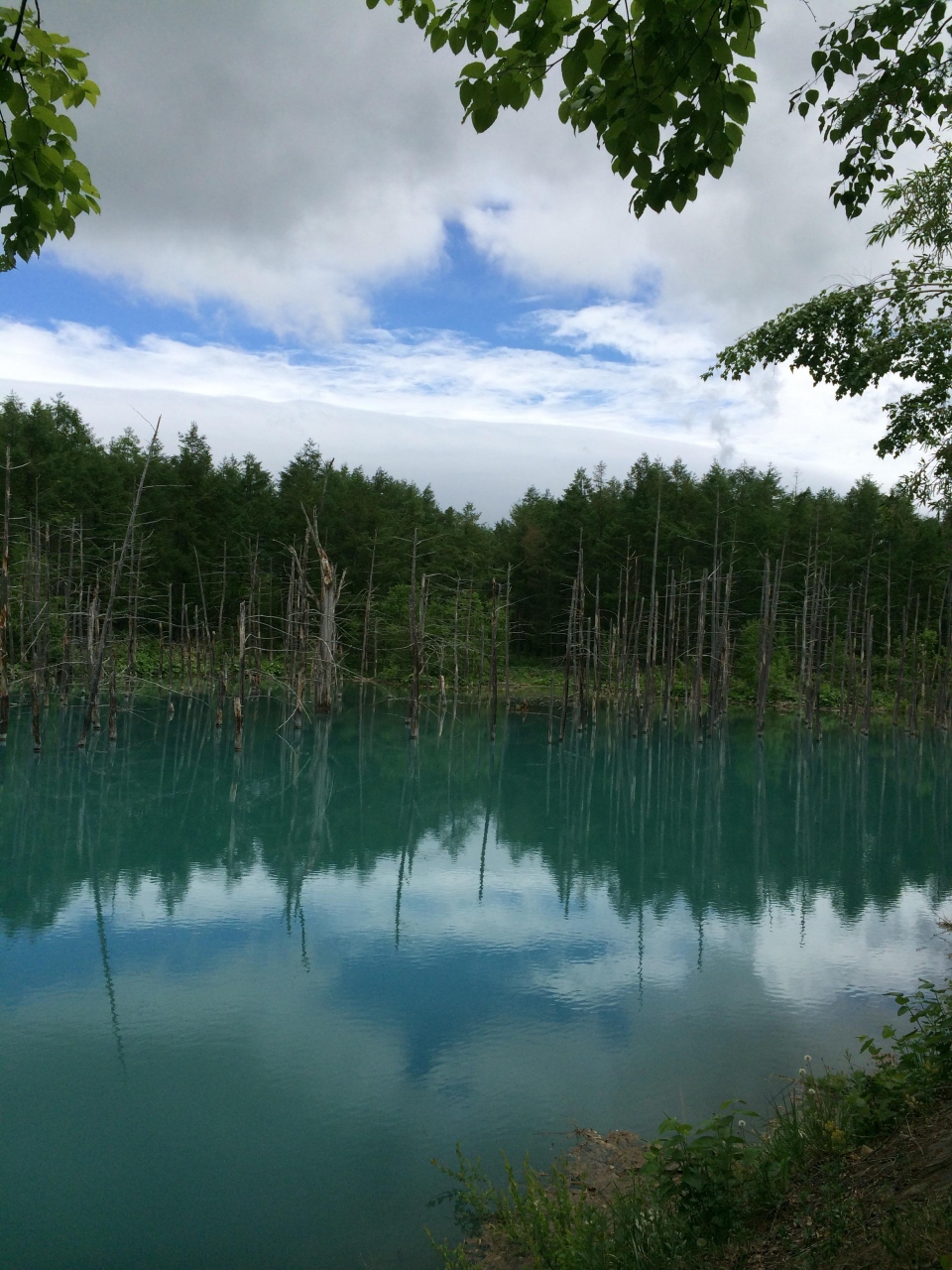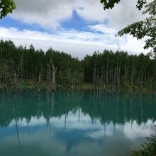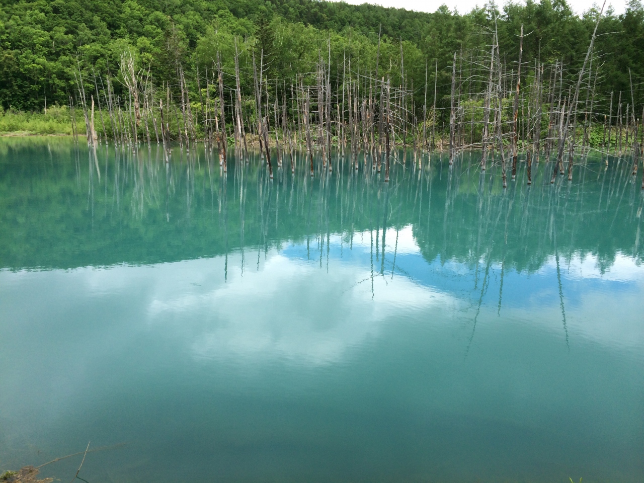 それまであんまり天気は良くなく、青い池に到着するちょっと前に日がさしてきてました。