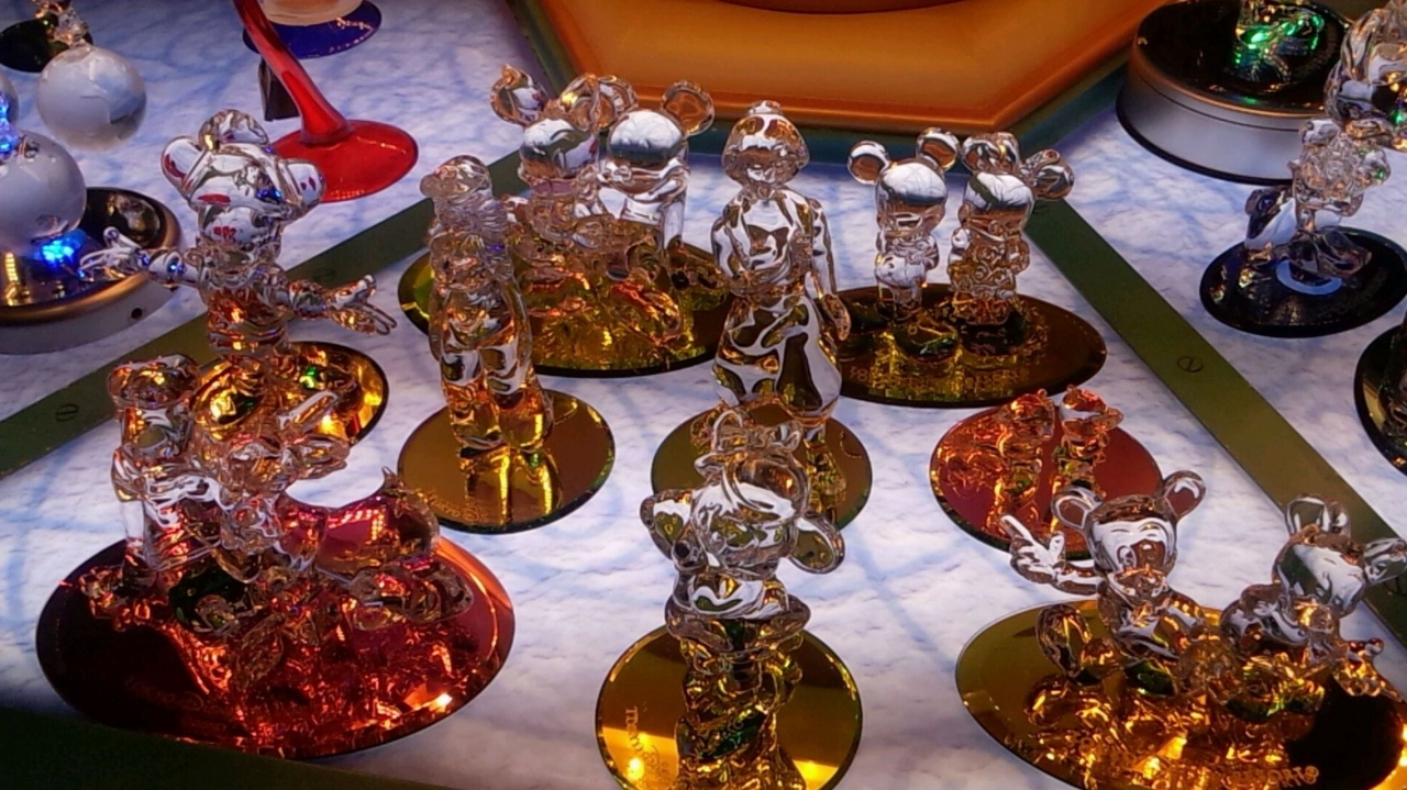 また、奥にはガラスでできたディズニーキャラクターの置物なども売られていて、職人さんが作っているところも見ることができます。