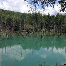 青を期待していたため、すこし残念でしたが、もともと緑の池を見に来たと思えばそれなりに美しい場所です。次回機会があれば天気の良い日に本当に青い池をみたいです。
