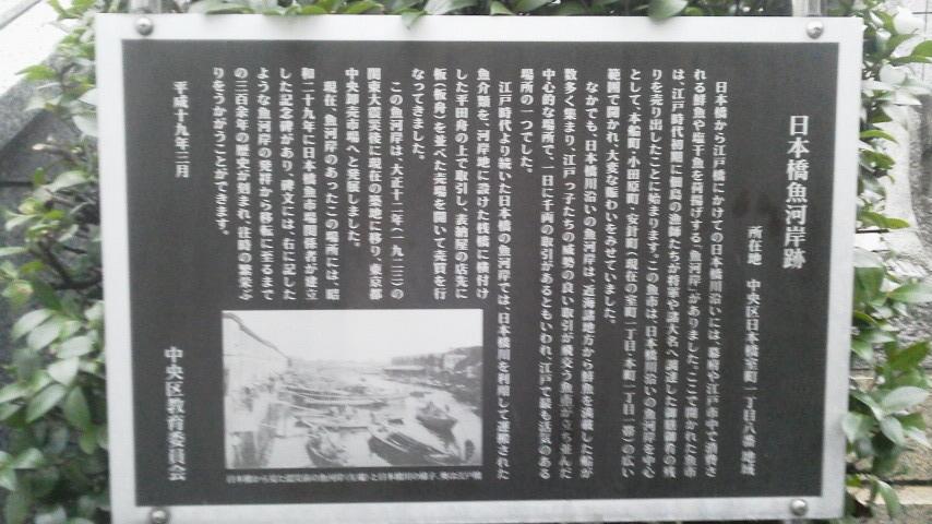 日本橋のすぐ脇にあるのが「日本橋魚河岸記念碑」~日本橋~