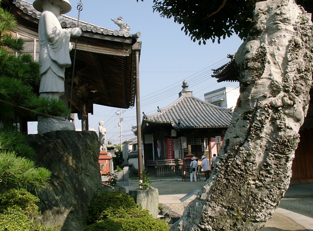 第15番国分寺までは田園地帯の巡礼なのですが、この第16番観音寺からは町なかの生活道に入り込みます。細い上に見通しも悪く車の場合少し走りにくいかなとも思います。