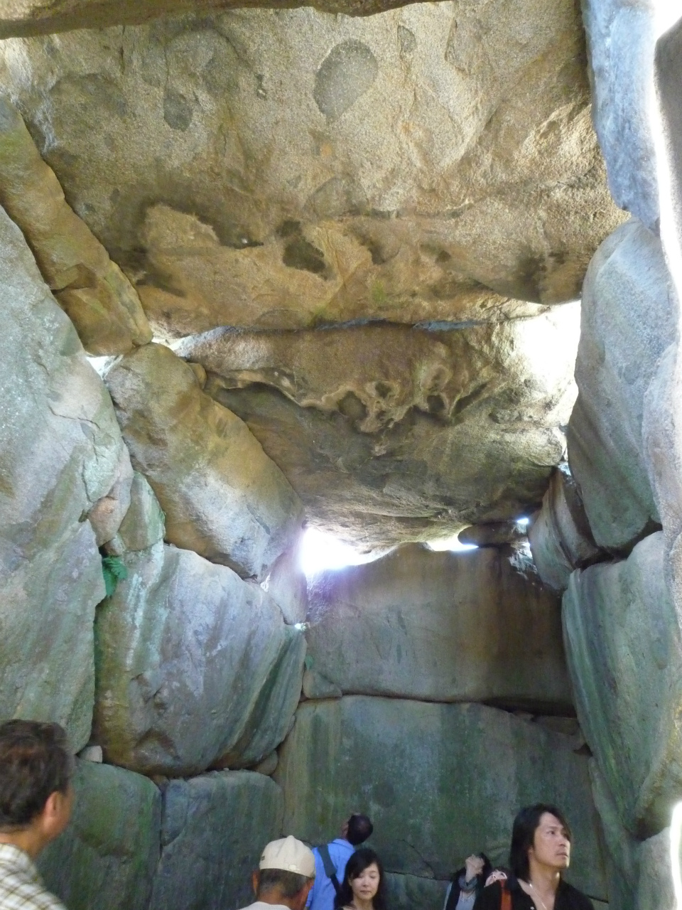 僕がまず訪れたのは、石舞台古墳である。教科書などでもお馴染みの古墳時代の遺跡である。盛り土が倒壊し、古墳を形作っていた盛り土が流れたため石棺を保管していた石室がむき出しとなった遺跡である。ここは内部にも入ることができるので2000年ほど歴史を遡った気持ちにさせてくれる。よくぞこれほど残ったものだと感心させられる。