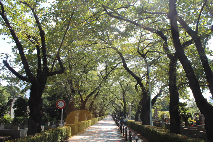 青山霊園は、地下鉄外苑前、青山一丁目、乃木坂から歩いていける都心の広大な霊園です。吉田茂など著名人のお墓も沢山あります。桜並木もあり春は花見に来る方もいます。お彼岸の時期なのでお墓参れに来る方が大勢いらっしゃり駐車待ちの車の長い列が出来ていました。