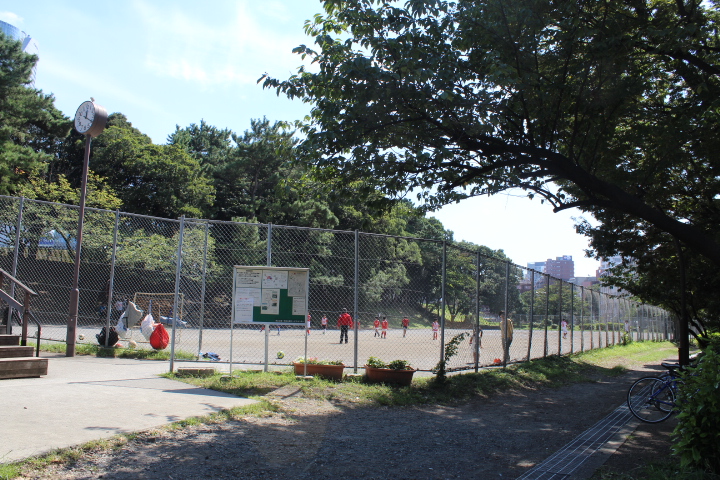 青山公園は、乃木坂駅の近くで外苑東通り(環状3号線)に面しています。対面には国立新美術館があります。一見ガランとした空地の様にも見えます。小さなサッカーコートもあり小学生らしい子供たちがサッカーをしていました。