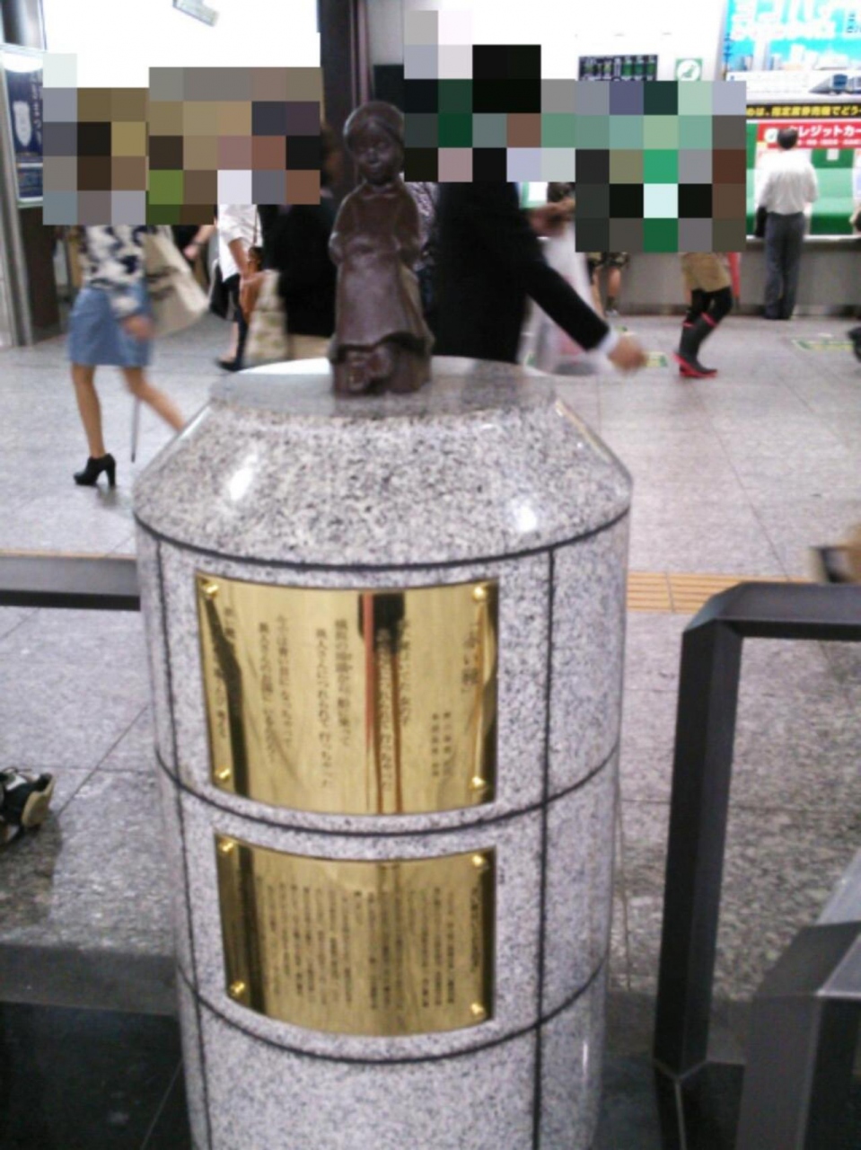 この像には色々な人の努力や働きかけがあって調べてみるとなかなか感動的なのでできればもっとゆっくり眺めていられて待ち合わせもできるような場所にあれば良いのにと思います。