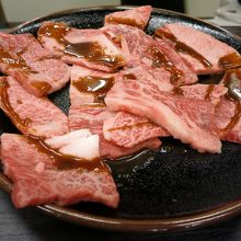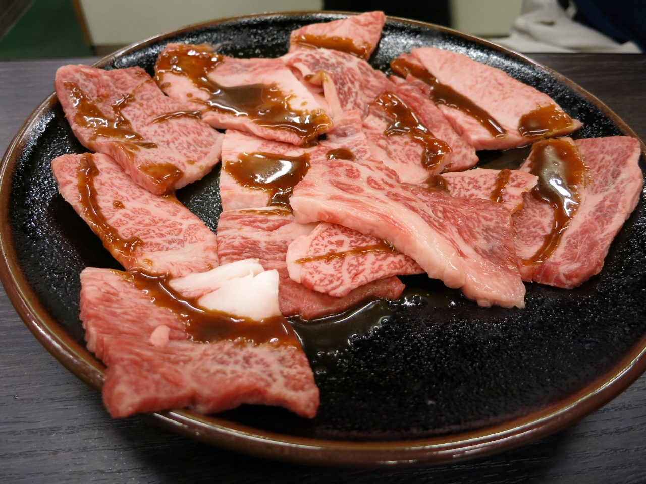 店内は丸椅子のテーブル席と、座敷席があり、テーブル席に通されました。安いとは言えさすがA5ランクの松坂牛なのでそれなりの値段がします。そこでさらに安い切り落としがあったので、それを戴きましたが充分美味で、ご飯が進みました。