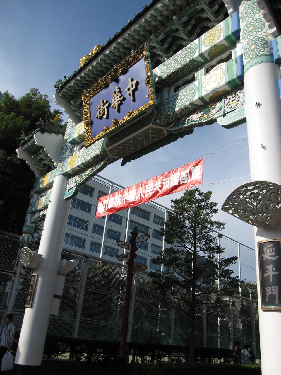 ただ、すぐ隣に学校があるため、この門を潜ってすぐには中華街の雰囲気にはなりません。中華街にしては少し素っ気ない道を少し(本当に少し)歩き、八百屋? 雑貨屋? の前を通ると、本格的に中華街が始まります。