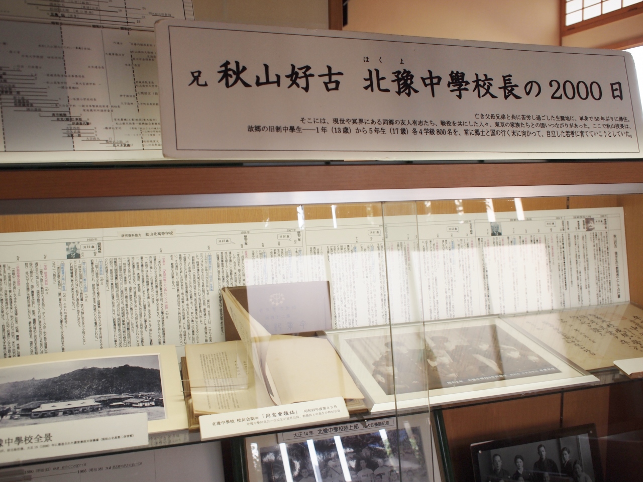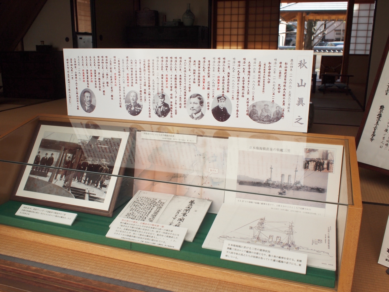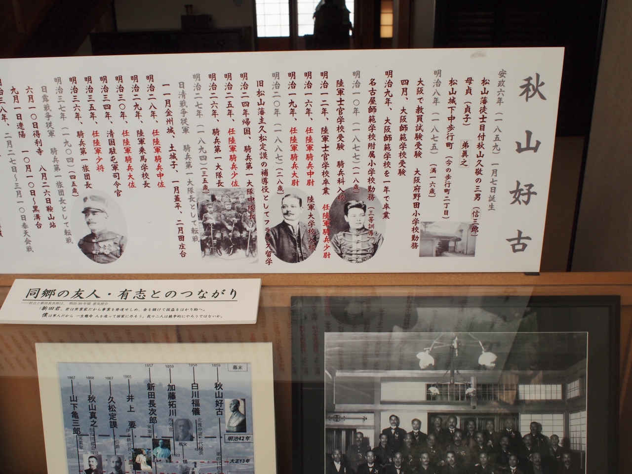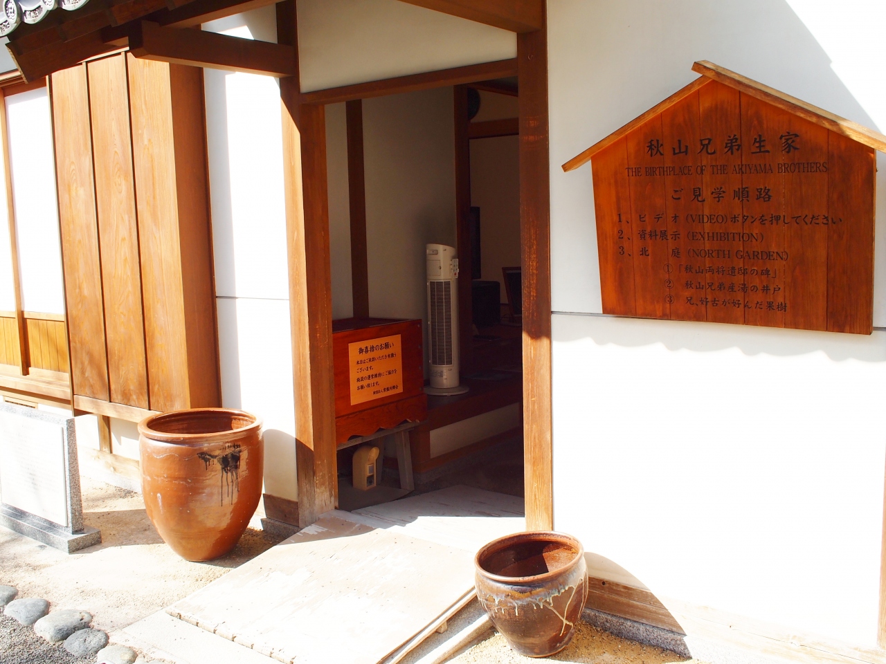 『坂の上の雲』の主人公である秋山好古・真之兄弟の生家を復元した展示館です。このタイプの観光地は、作品を知っているかどうかで評価が大分違うようですが、全然作品を知らない人でも、この兄弟を理解してもらえるよう、ビデオ映像や年表・写真などが充実していました。