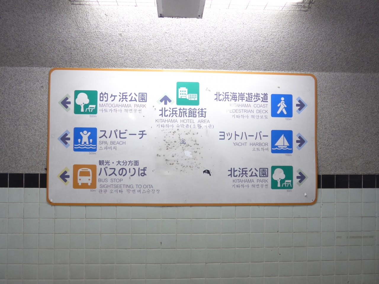 横断歩道が無いので地下通路に入ると道案内の看板があり右手に出ると直ぐに