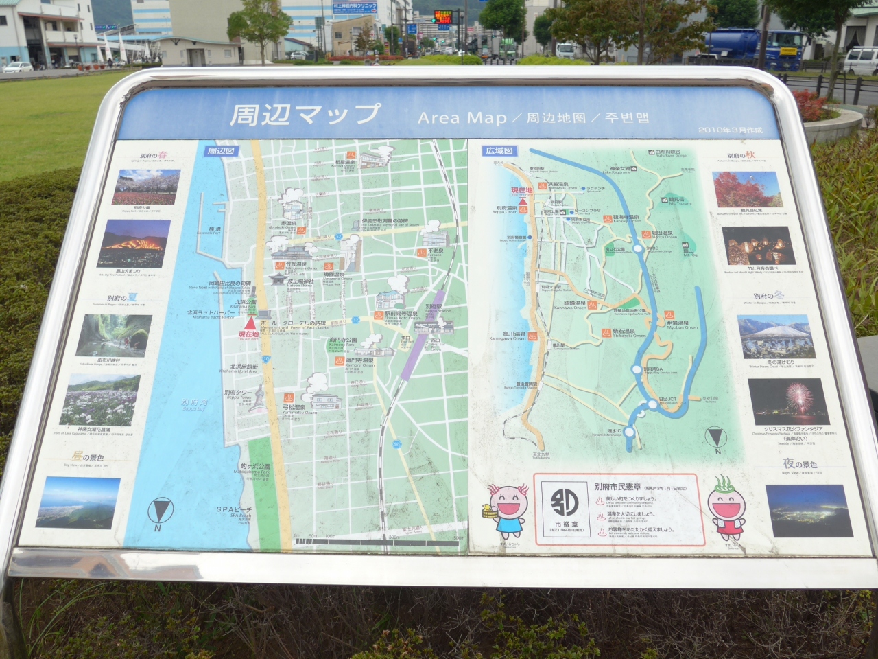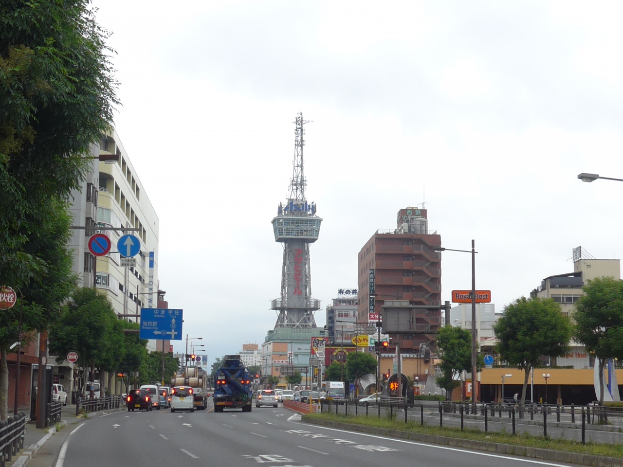 直ぐ左手にヨットハーバーと別府湾・高崎山、右手には商業施設の「ゆめタウン」があります。