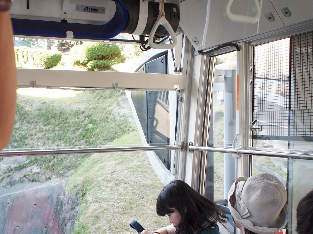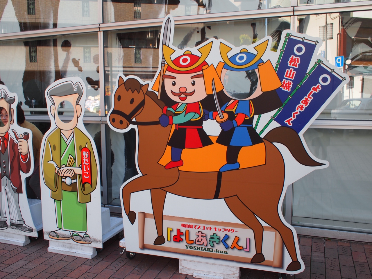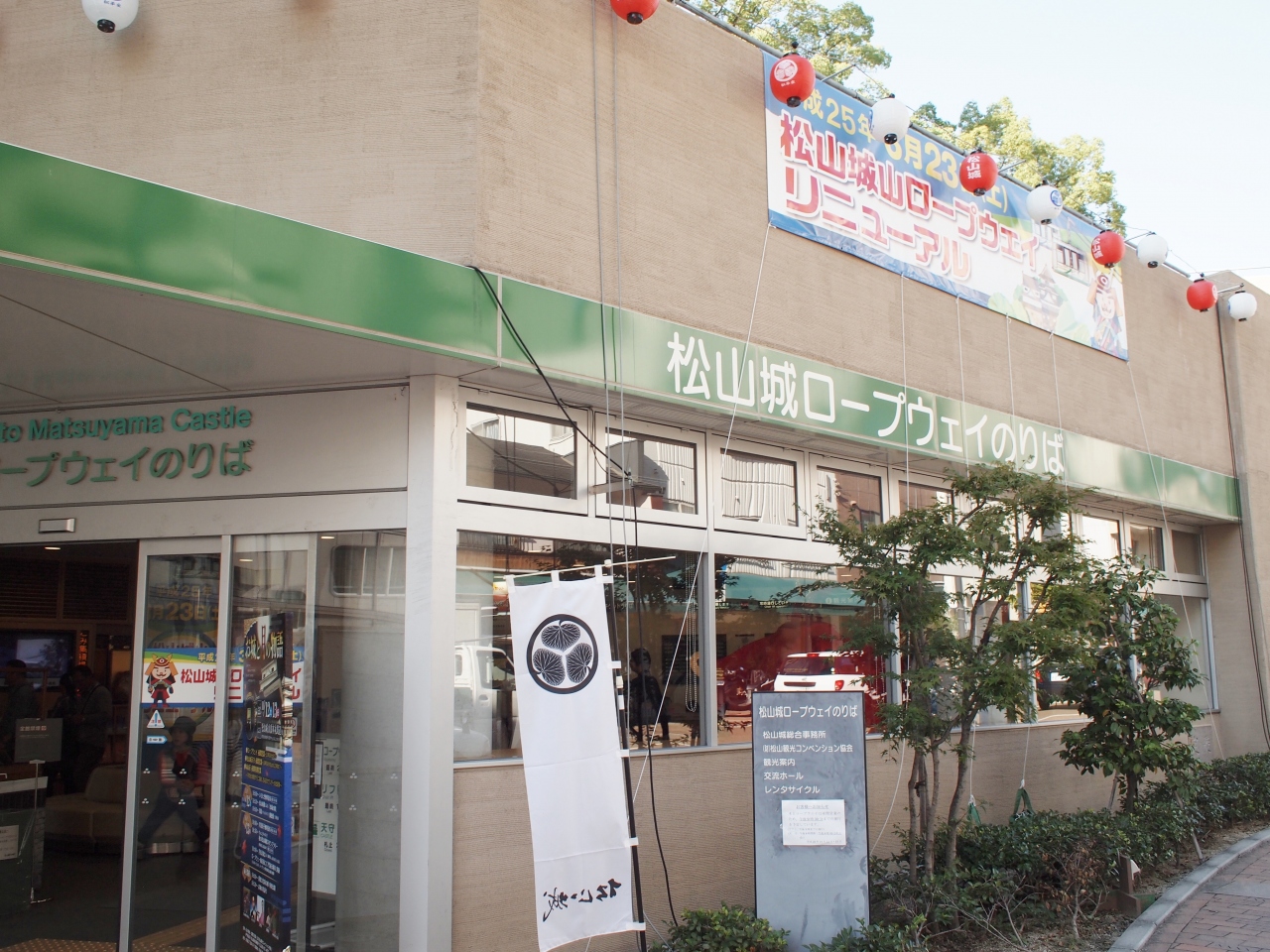 松山城の城山へ登る一番楽な手段はこれに乗ること。駅舎もリニューアルされたばかりのようで、きれいでした。驚いたのはリフトかロープウェイの、好きな方を選べること。マドンナの姿をした係員さんがいたり、『坂の上の雲』グッズが売られていたりと、観光客を楽しませてくれました。