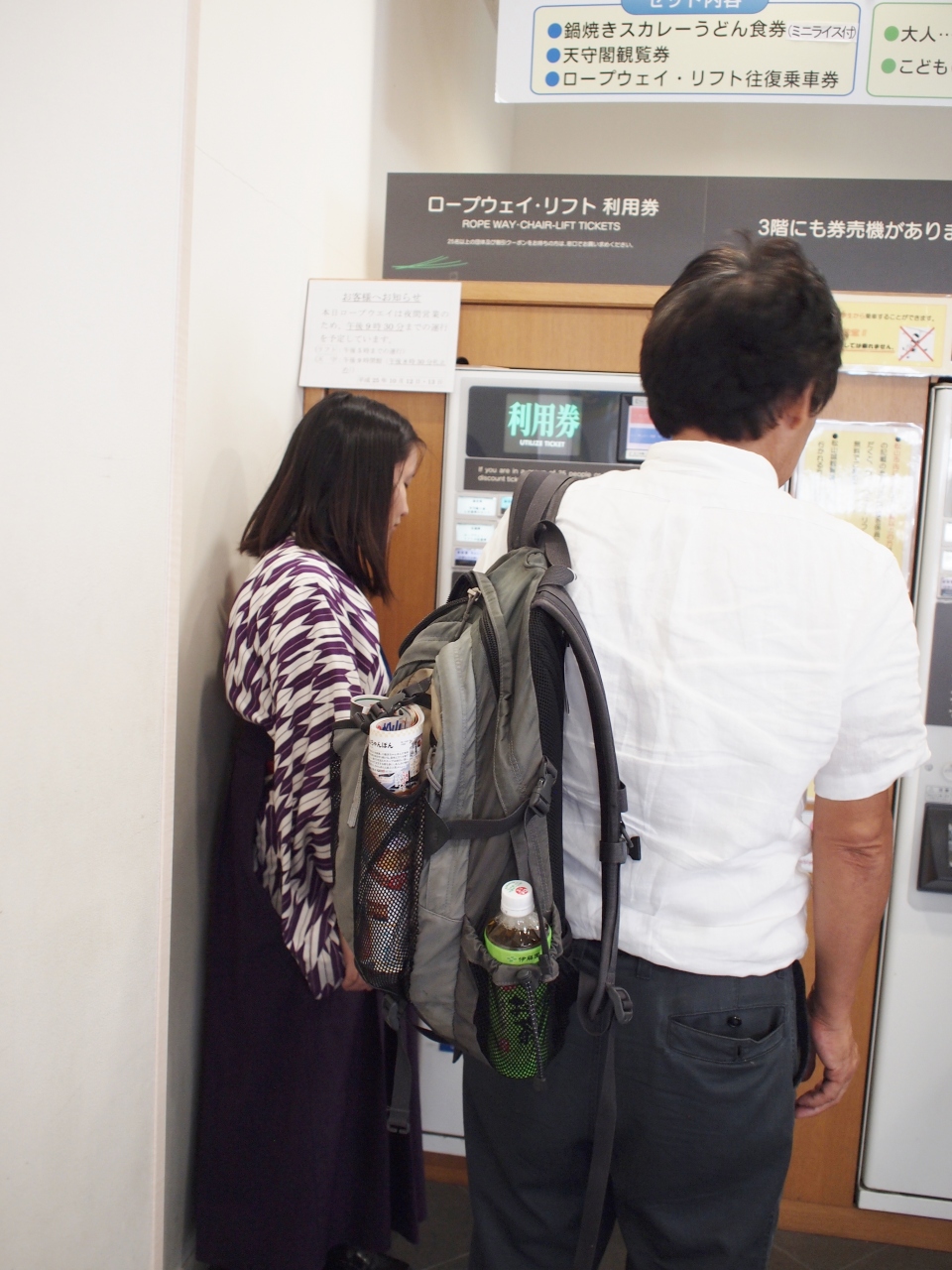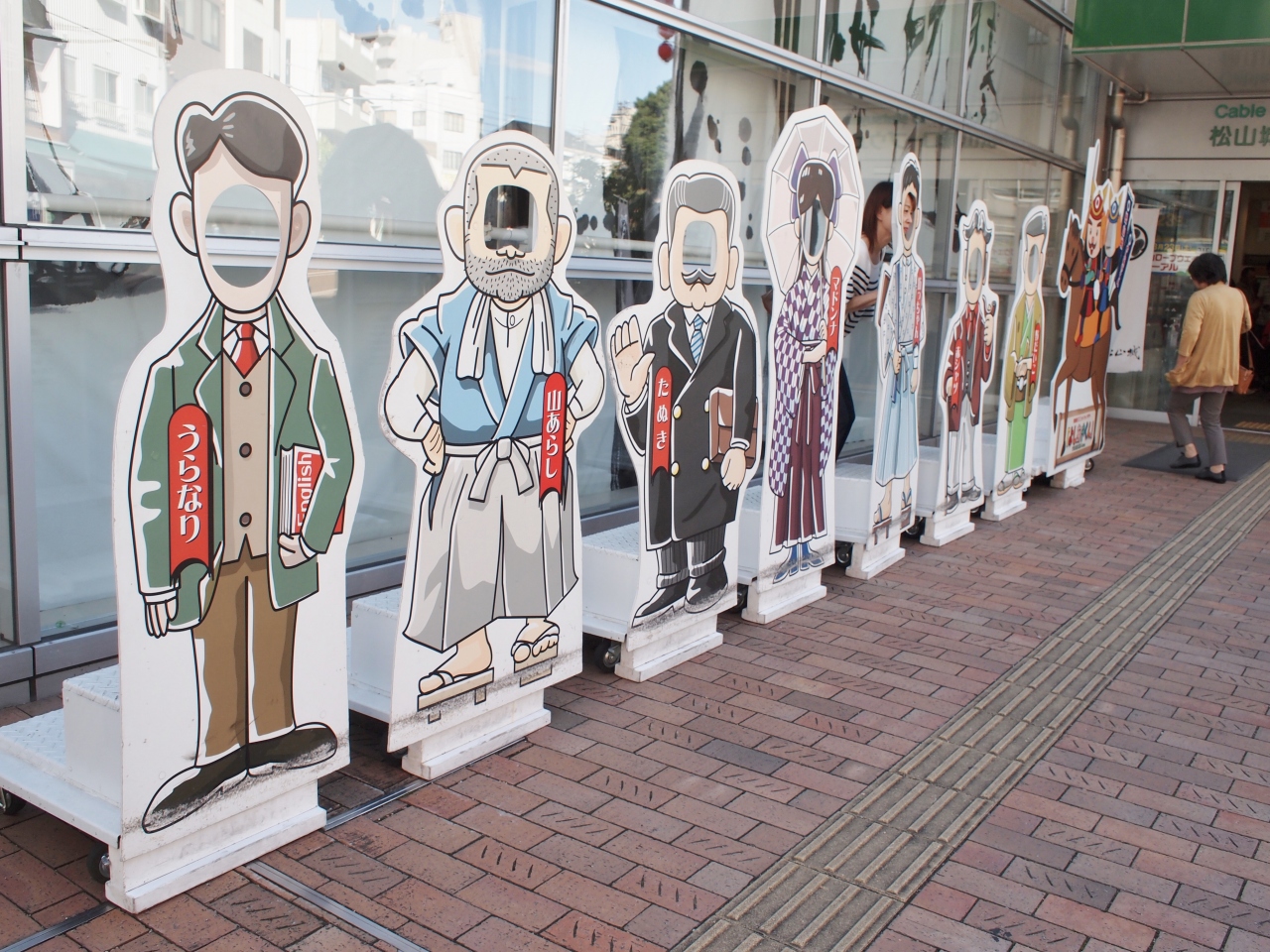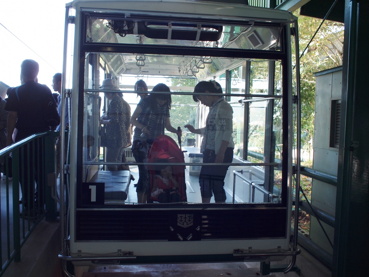 松山城の城山へ登る一番楽な手段はこれに乗ること。駅舎もリニューアルされたばかりのようで、きれいでした。驚いたのはリフトかロープウェイの、好きな方を選べること。マドンナの姿をした係員さんがいたり、『坂の上の雲』グッズが売られていたりと、観光客を楽しませてくれました。