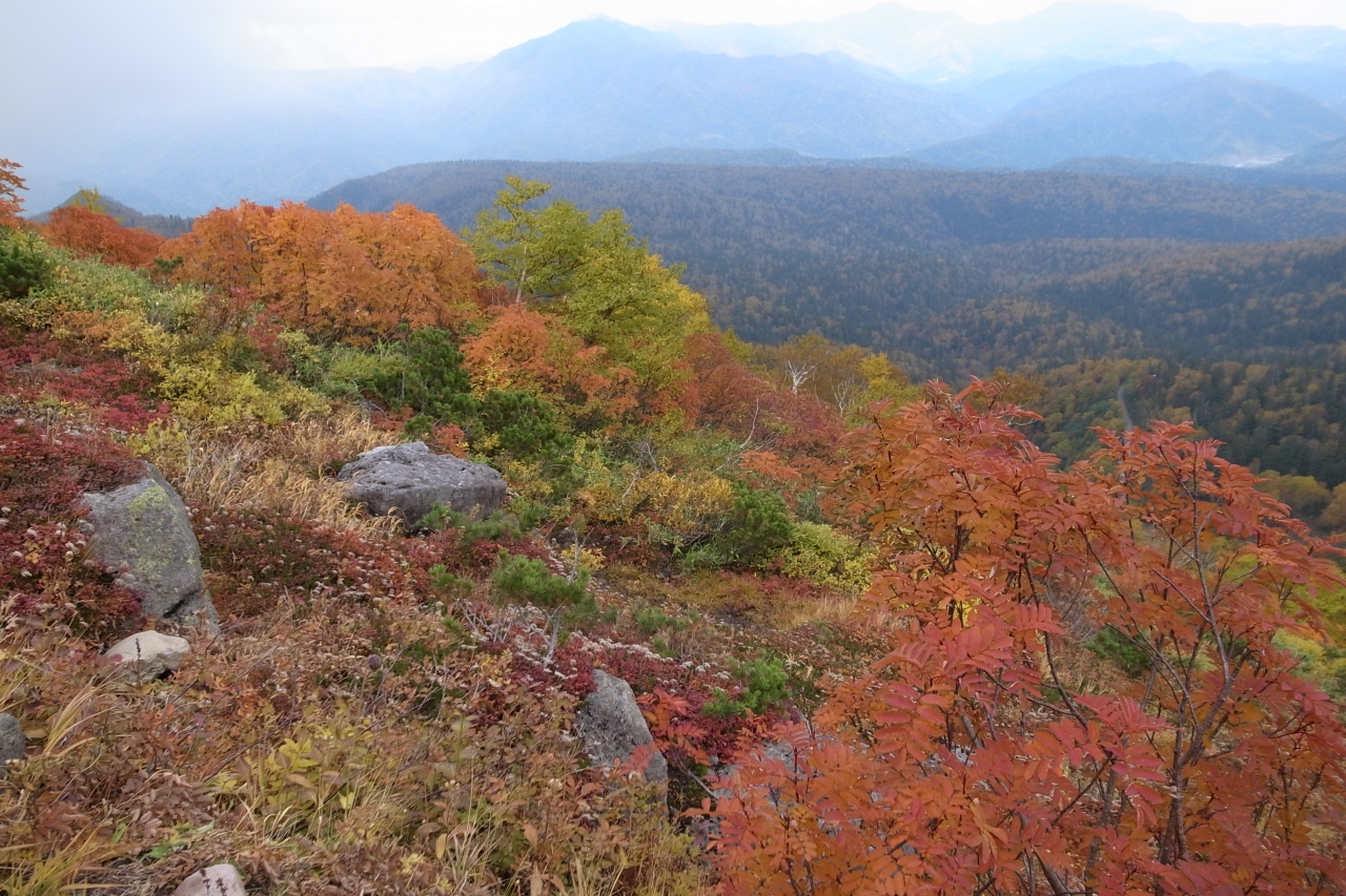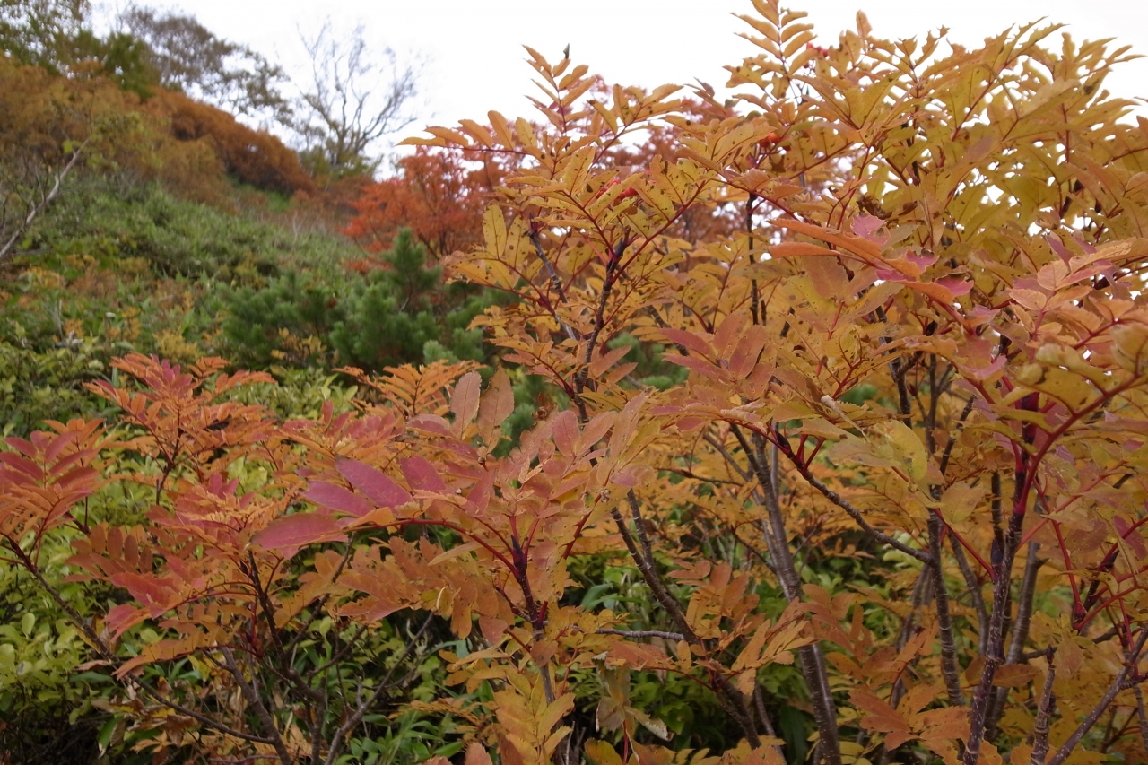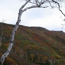 大雪山の紅葉スポット。大雪山赤岳に続く斜面が真っ赤に染まることで有名。山の中にあるため、紅葉シーズンには、大雪湖近くの駐車場からシャトルバスで行くことになる。私が行った時には紅葉の盛りを過ぎており、シャトルバスの運行も終わっていた。そのため、車で直接行くことができた。ガタガタの山道を30分ぐらい走る。盛りを過ぎたと言っても、まだまだ十分に紅葉を楽しむことができた。観光バスが何台も来ていた。