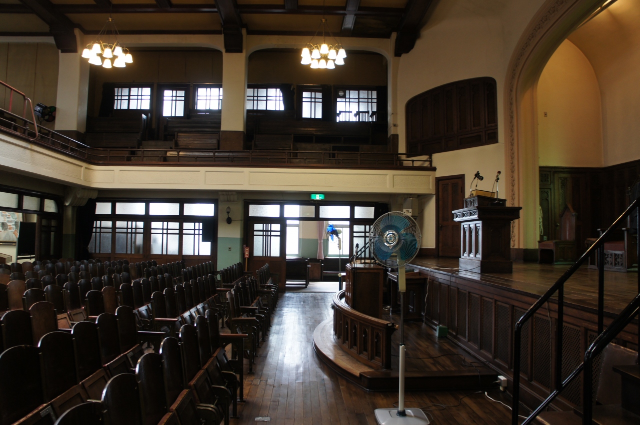 本郷中央教会は、春日通り沿い。オープンな教会で、内部に入って礼拝堂も見せてもらえます。石造りの重厚な建物なので、ステンドグラスとかも期待したのですが、そうした装飾系はほとんどなし。むしろ、にこやかな信者さんたちの笑顔が印象に残りました。