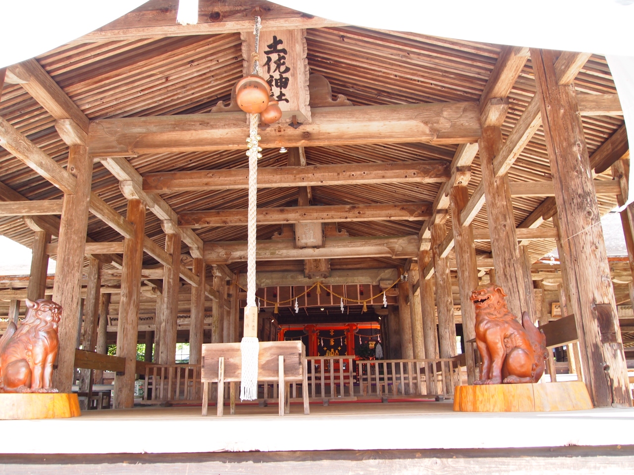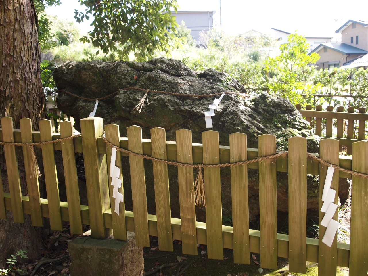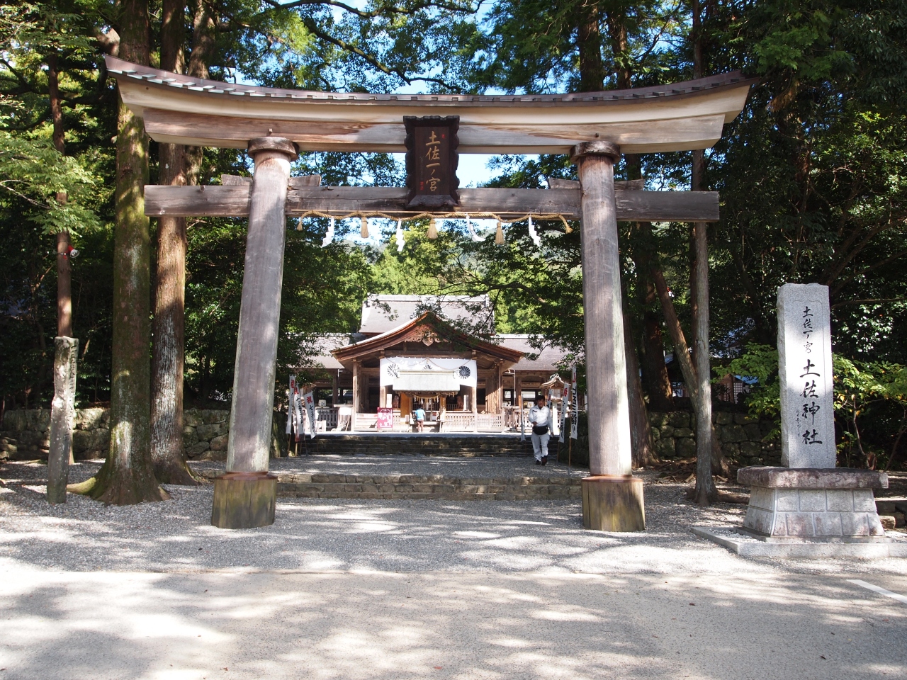 高知市の郊外にある土佐の国一の宮の土佐神社です。本殿等が、国の重要文化財に指定されています。本殿の裏手には大きな御神木のある杜が広がっています。そこから少し行くと、「つぶて石」といわれる石が祀られていました。古代、ここで祭事が行われていたのでしょうか。