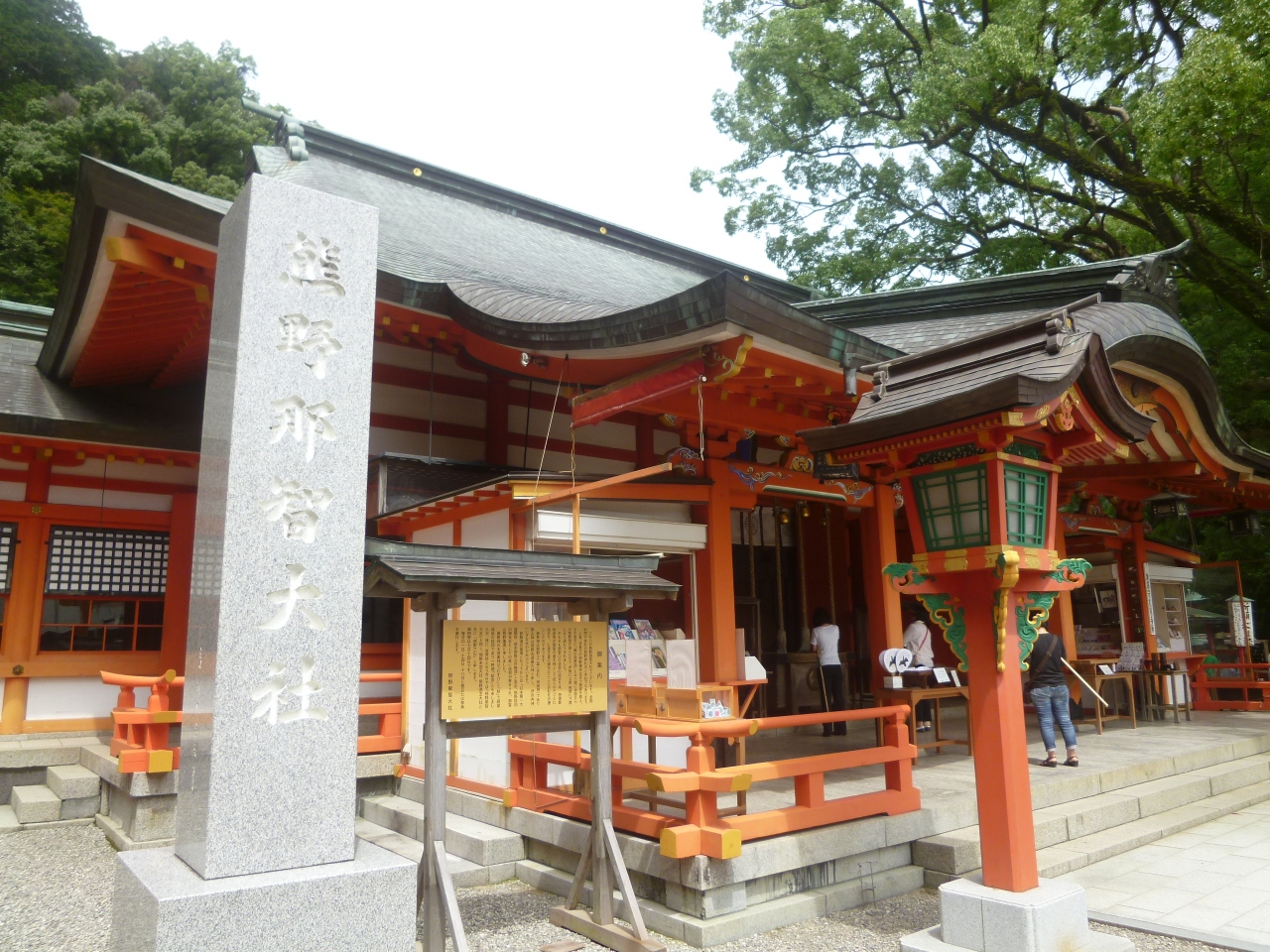 熊野那智大社までは熊野古道を歩いていきました。2歳の子供には少し大変な山登りでしたが、1時間30分で大社にたどり着くことができました(ガイドブックでは40分でつくと書いてありました)。大社でお参り後、那智の滝まで約20分かけて山を下りました。さすが那智の大滝、雄大な姿を拝むことができ、疲れを忘れさせてもらいました。