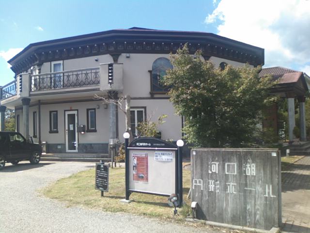 こちらのホールは河口湖北東岸に美術館が並ぶエリアの一角にあり、河口湖を代表する文化施設として、ちょっとしたコンサートなどが開催されている場所のようでしたが、平時は内部公開されていないようで、ちょっと近寄り難い雰囲気を感じました。
