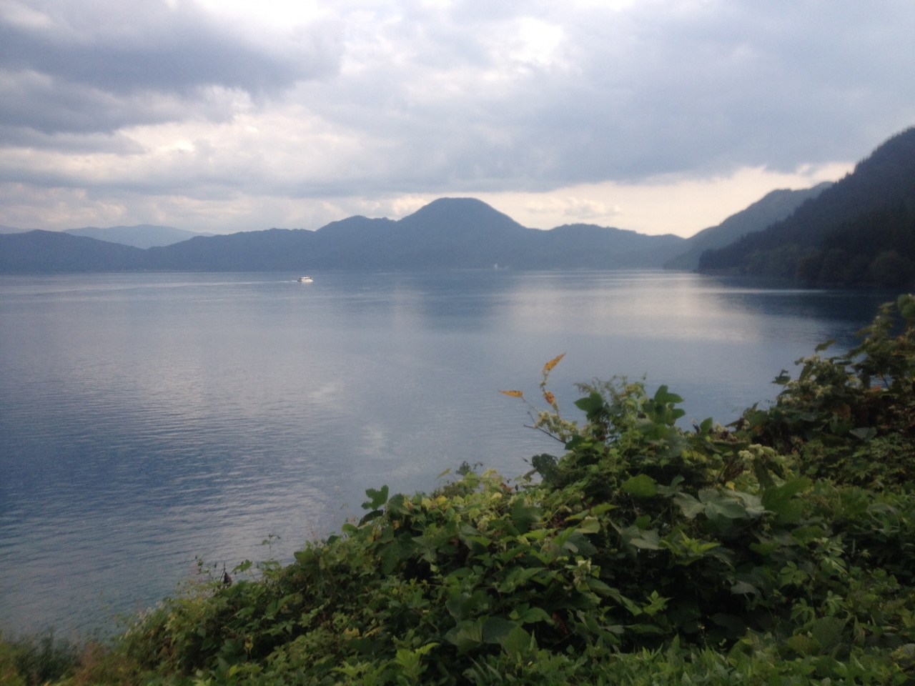 車で一周30分で回れる田沢湖。ほぼ円で、見る角度によってバックの景色が違ってきれいでした。湖が打ち寄せる岸は水が青く見えるところもあり、きれいです。ところどころに車を停められるスペースがありました。水深は遠くから見ても全く分からな景色です。私達は見ていませんが、夕焼けの写真がきれいでした。時間が合う人は是非。