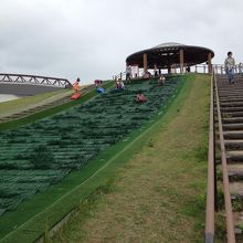 子供が食いついたのは芝すべり。少しはがれていて勢いをつけないと途中で止まってしまいますが、無料なので文句は言えません。それでも十分楽しめました。