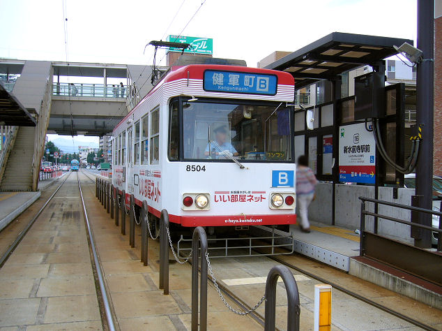 熊本市街中心部の交通センター周辺は、JRの駅からかなり離れており、この市街中心部とJRの駅(熊本・上熊本・新水前寺)との間を熊本市電が結んでいます。