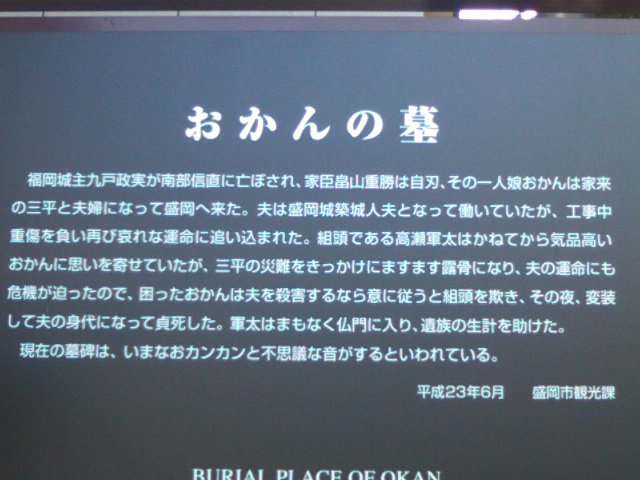 このお墓は、北山寺院群のやや南方にある寺院、大泉寺の入口付近にひっそりと建っています。おかんに関しては、画像の解説板を御参照頂きたく思いますが、ここに書かれていたことを確かめようと、軽く叩いてみたら確かに金属音のような特殊な音を感じました。少し怖く感じる方もいらっしゃるかもしれないスポットです。