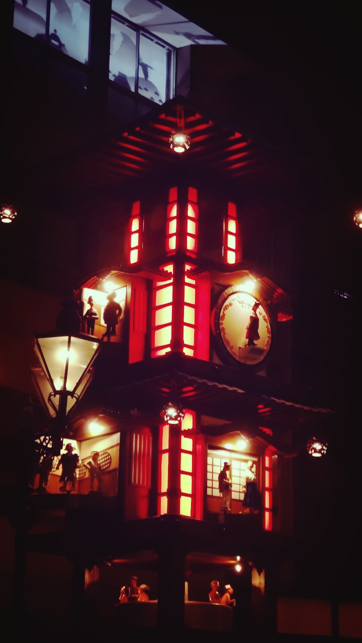 私たちは夜見たので周りの壁がスクリーンになって映像が映し出されていました。