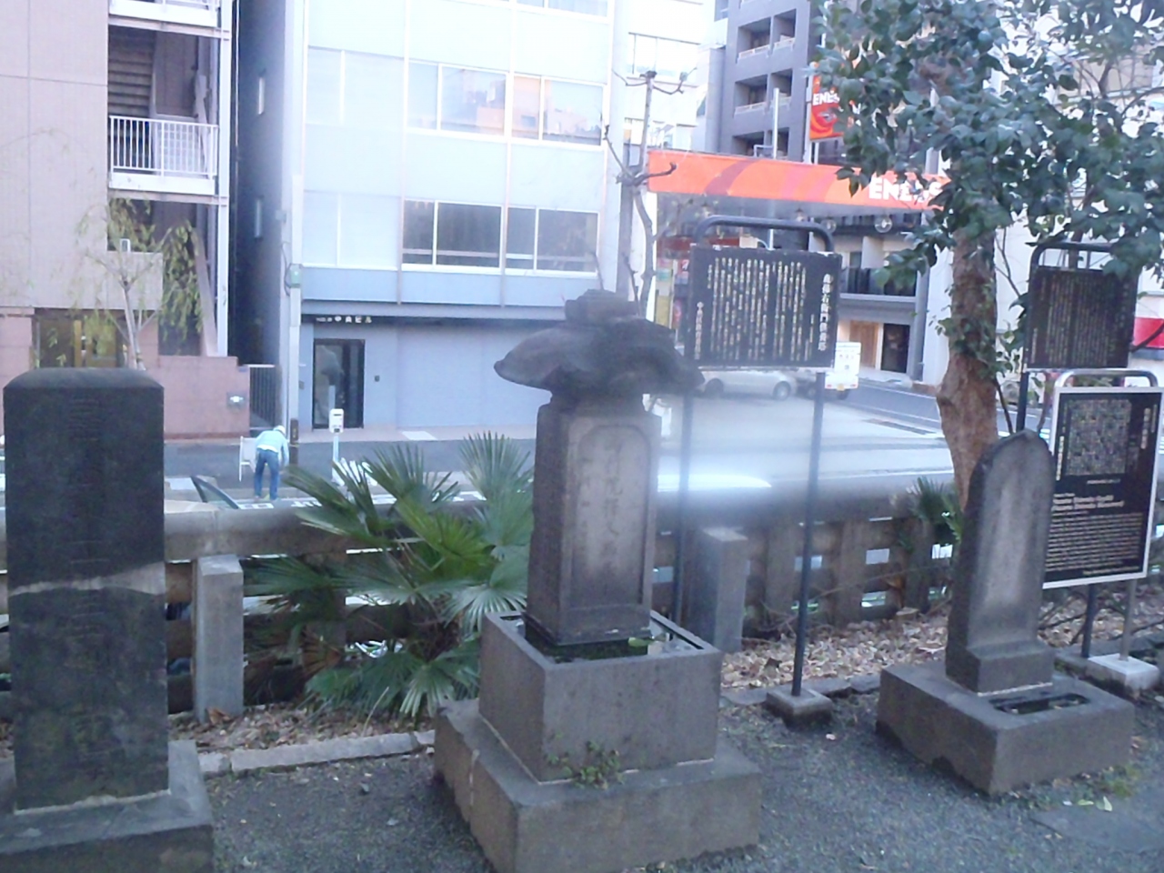 東京メトロ日比谷線築地駅を下車して参道正面入口から入ると、境内左側の道沿いに歌碑や供養塔に著名人の墓などが並んでいるスペースにあります。