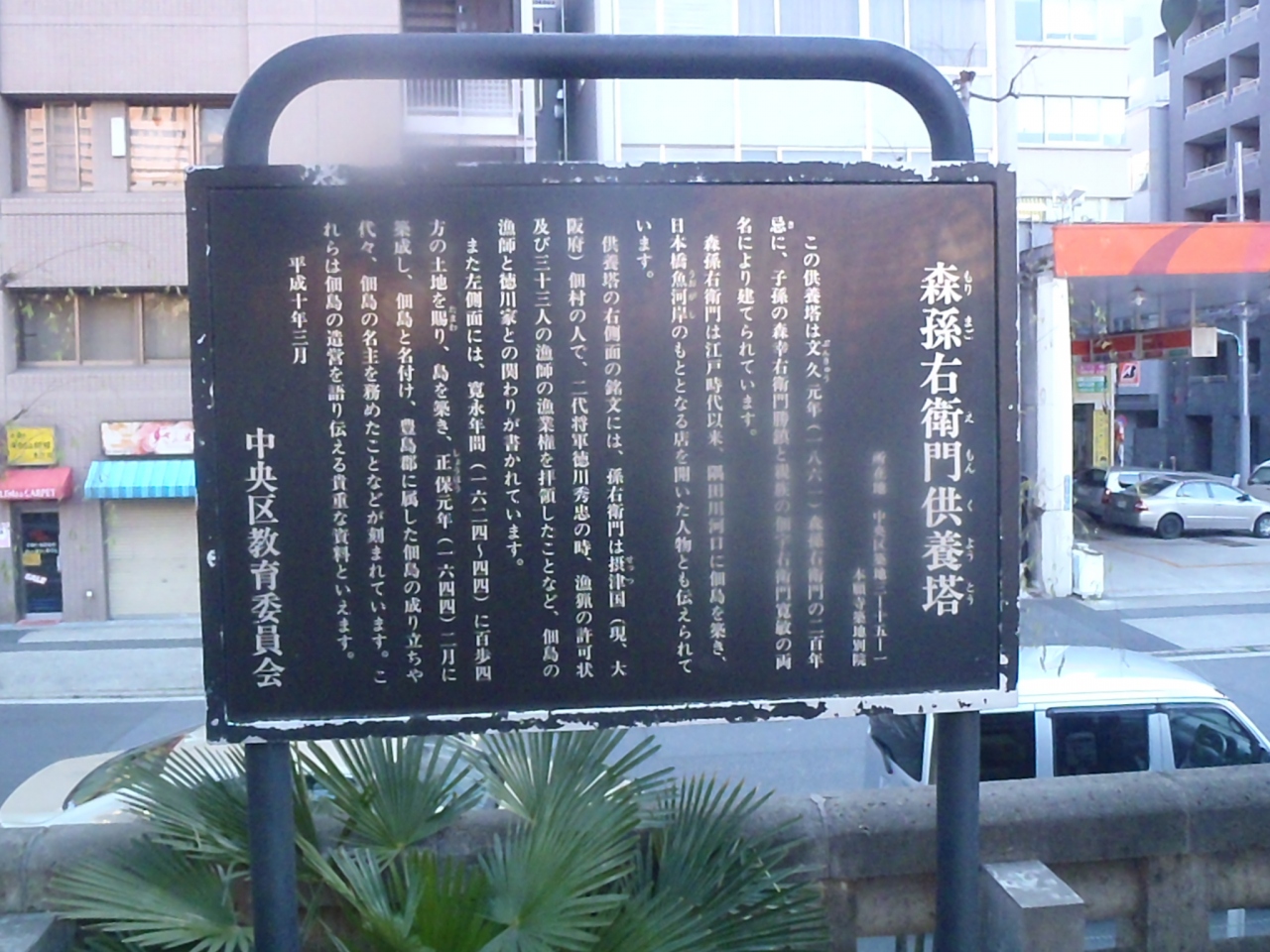 掲示板には、江戸時代に、隅田川河口に佃島を築き、日本橋魚河岸のもととなる店を開いたと、伝えられているそうです。