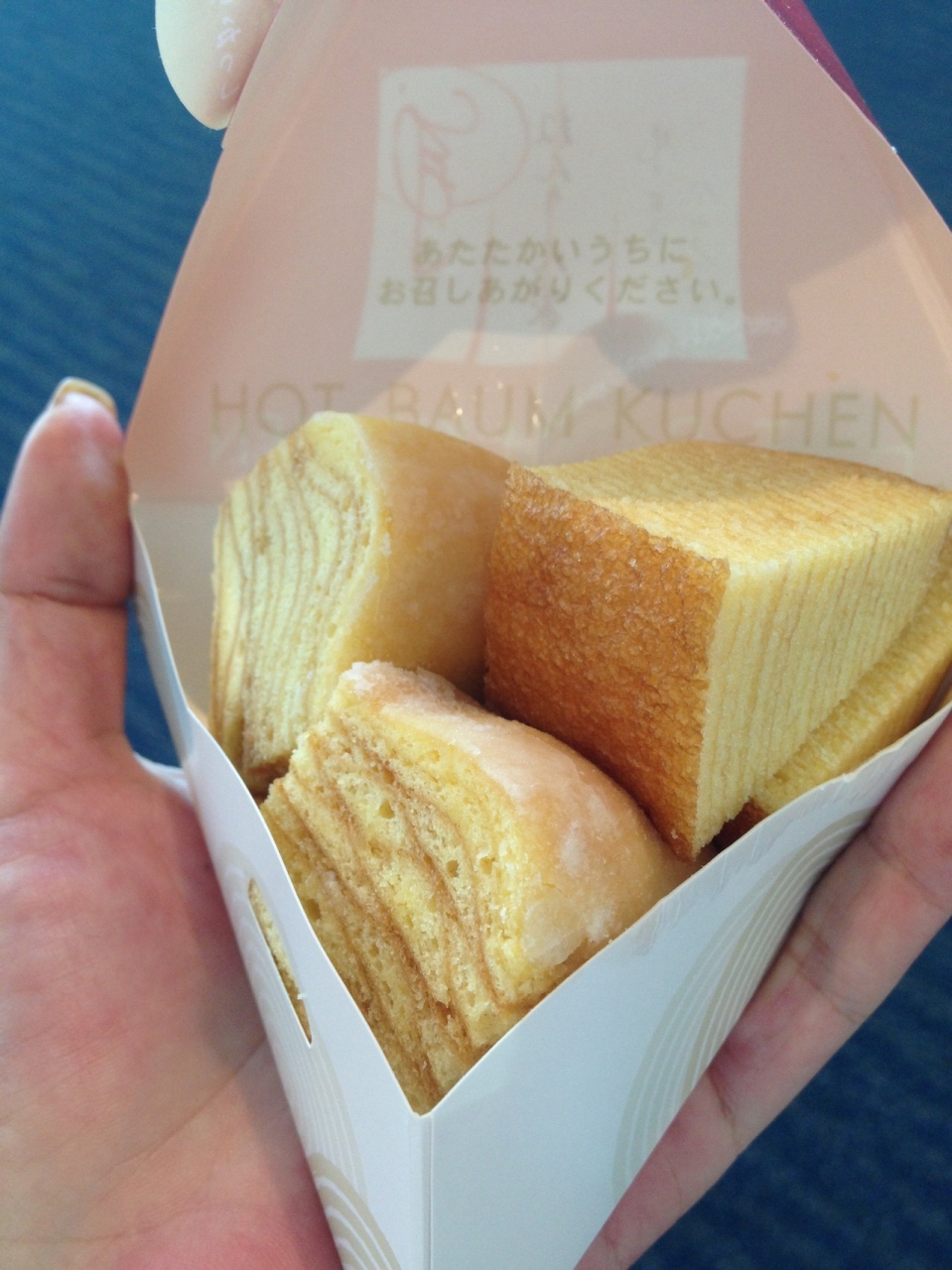 大好きなバームクーヘンのねんりんやのカフェ。目的は“ホットバームクーヘン”。コーヒーとのセットで700円くらいでした。付け合せに生クリームかアイスを選択できます。テイクアウトも出来たのでテイクアウトにして自分が利用する搭乗口付近で頂きました。味は普通のバームクーヘンを温かくしただけ、、、でリピートするほどではないと思います。