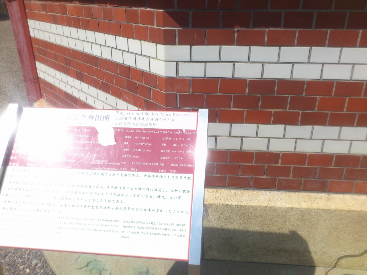 明治村の5丁目にある建物で、赤いレンガで出来ています。明治村には京都派出所もありますが、京都派出所はサーベルを刺したおまわりさんが主役なのに対して、こちらは建物が主役です。東京駅の丸の内側にあったようですが、確かに復元された東京駅と同じ雰囲気がします。